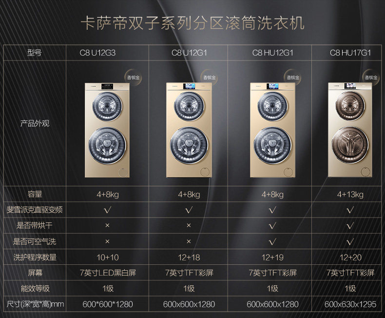 Casarte Twin Cloud Drum Washing Machine C8 Hu12G1-U12G3-C8 Hu12G3 Washing and Drying Integrated
