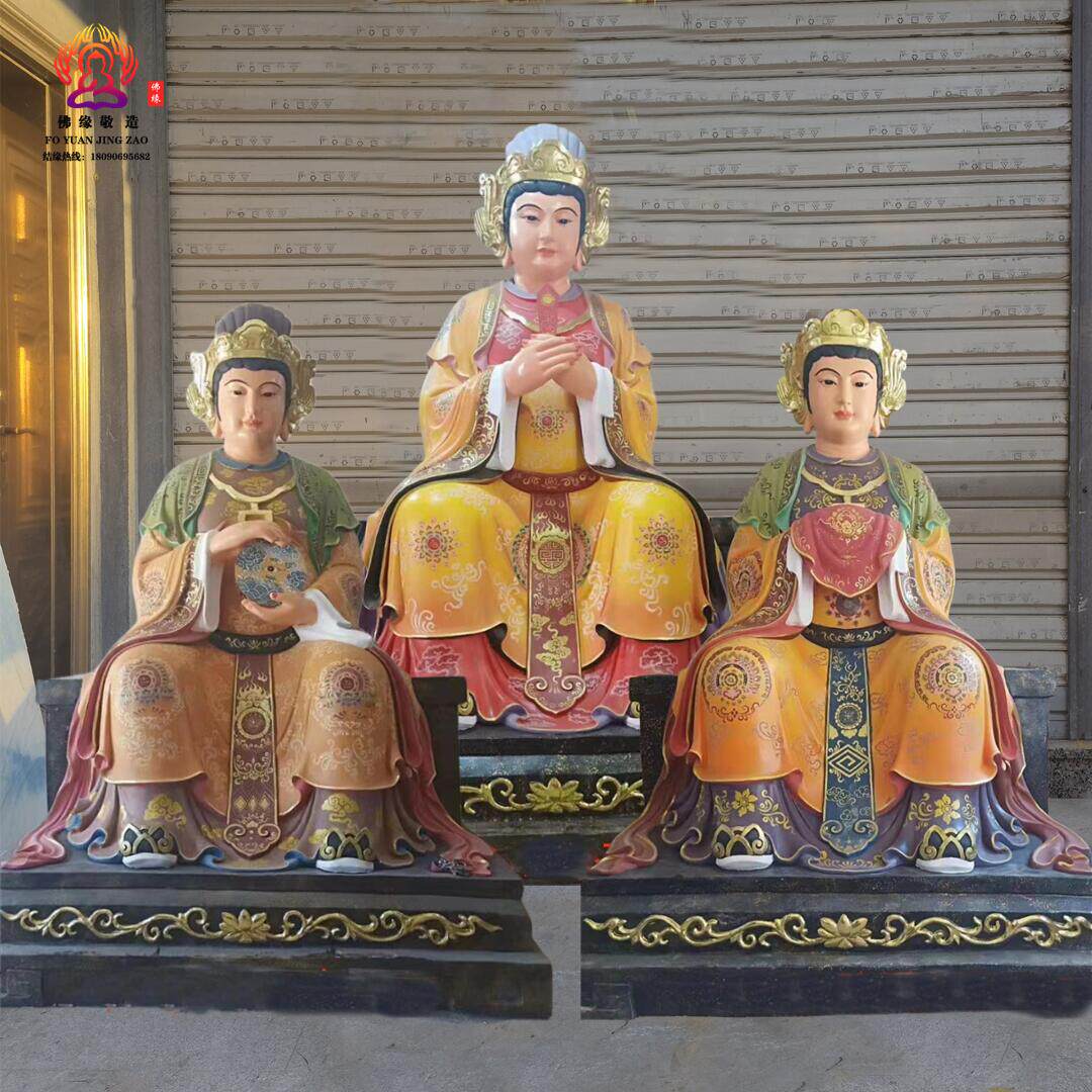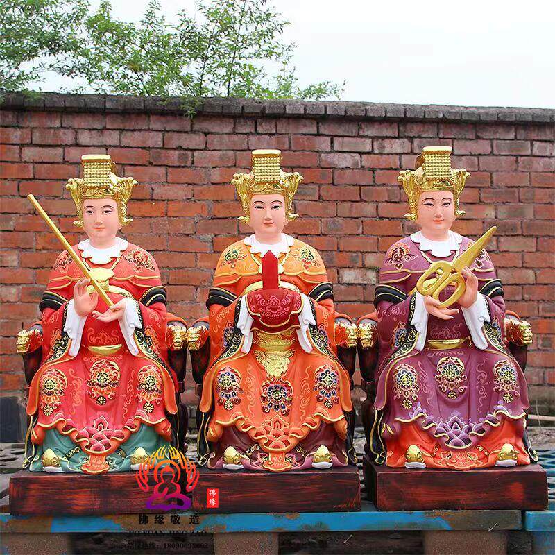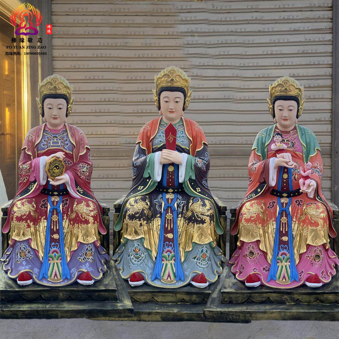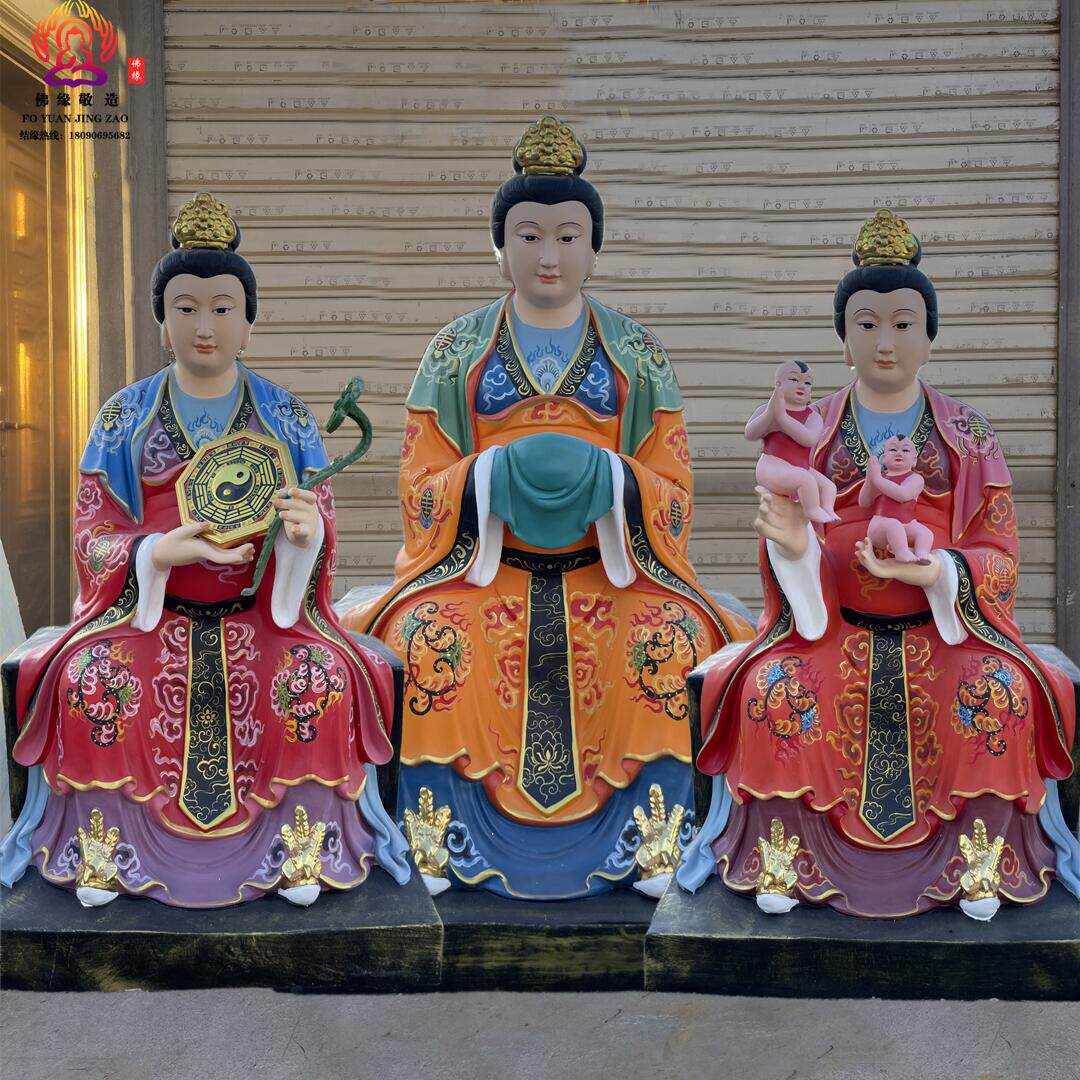 Three Fairies Goddess Statue, Goddess of Childbirth, Taishan Grandma, Bi Xia Yuanjun, Three Fairies, Resin, Fiberglass, Bronze Sculpture Ornament