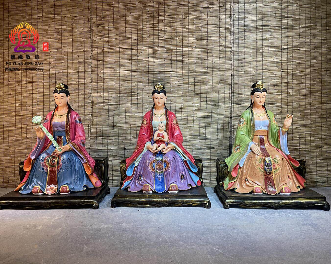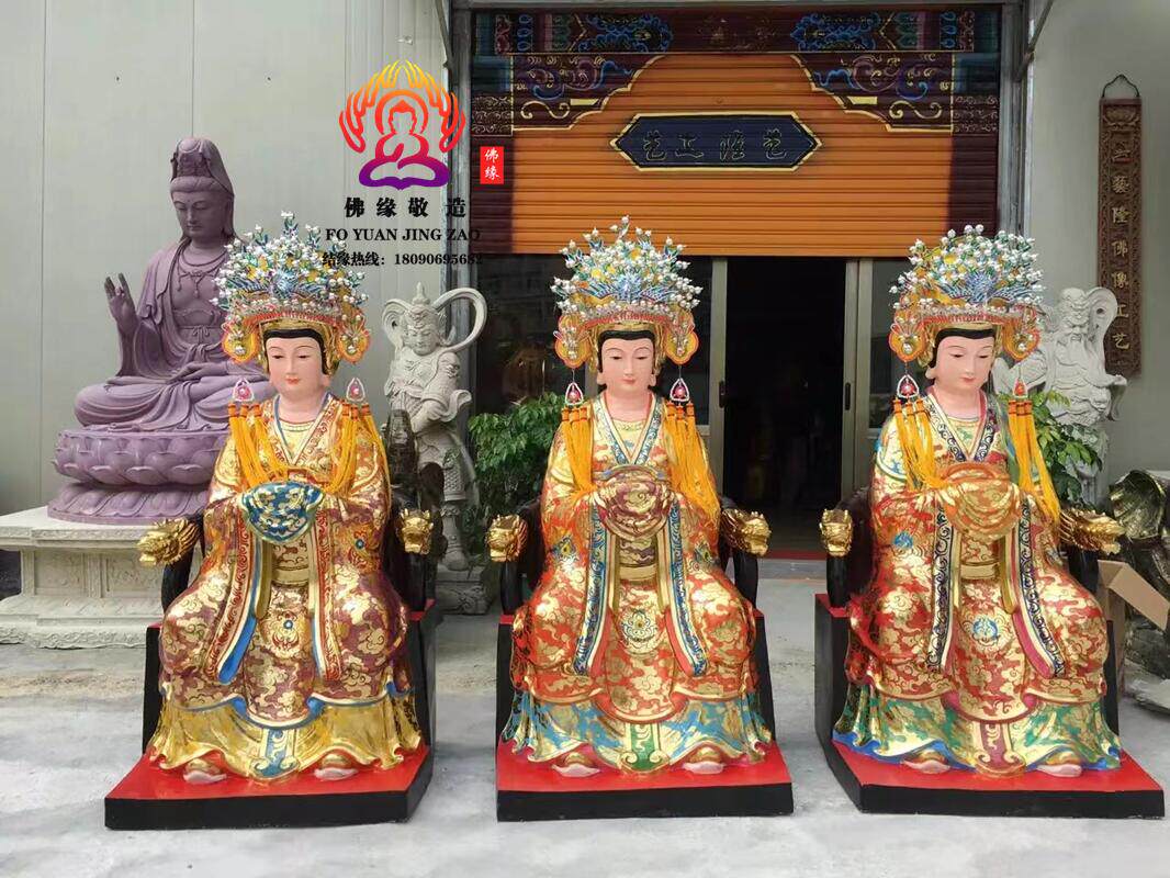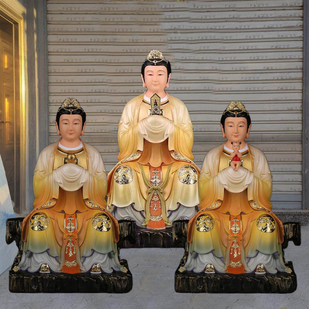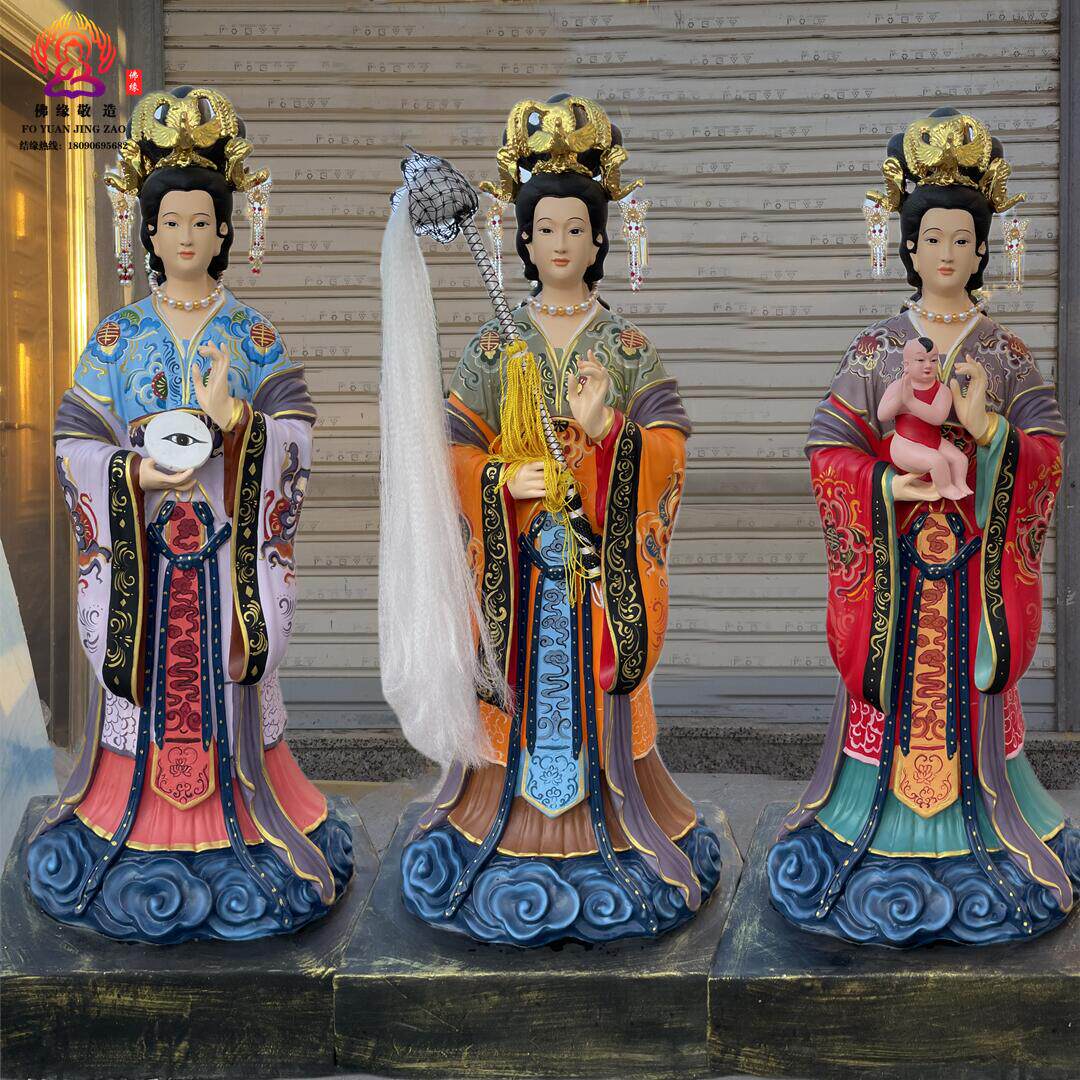 Three Fairies Goddess Statue, Goddess of Childbirth, Taishan Grandma, Bi Xia Yuanjun, Three Fairies, Resin, Fiberglass, Bronze Sculpture Ornament