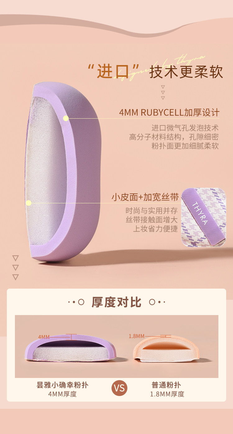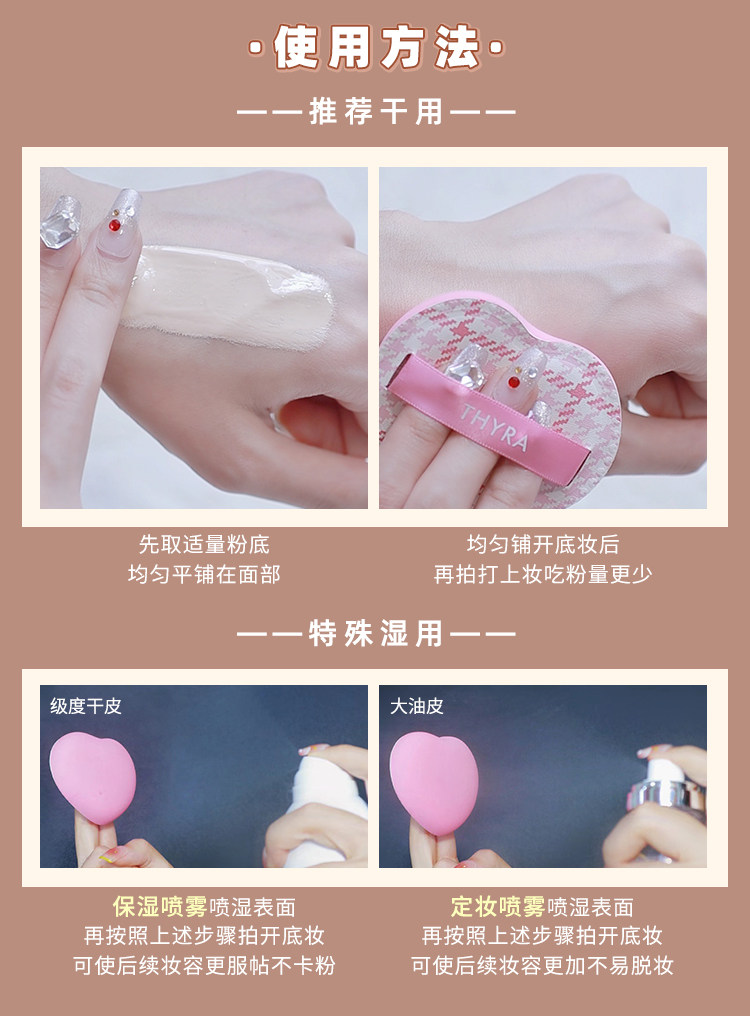 Thyra Small Miracle Puff Cushion, Dual-Use for Dry and Wet, Ultra-Soft, Non-Absorbent Makeup Sponge, Foundation Liquid Special for Women
