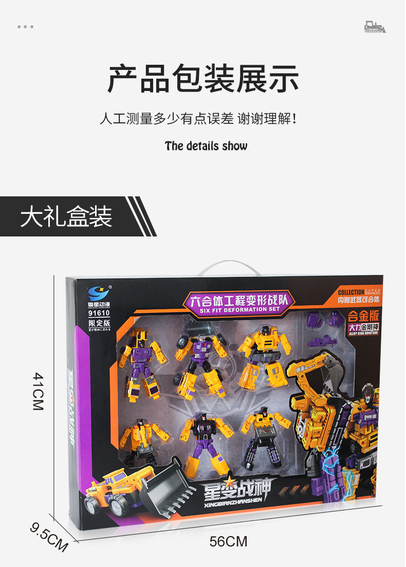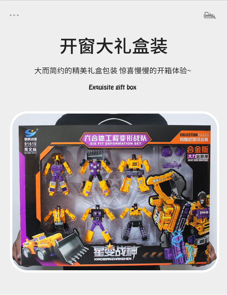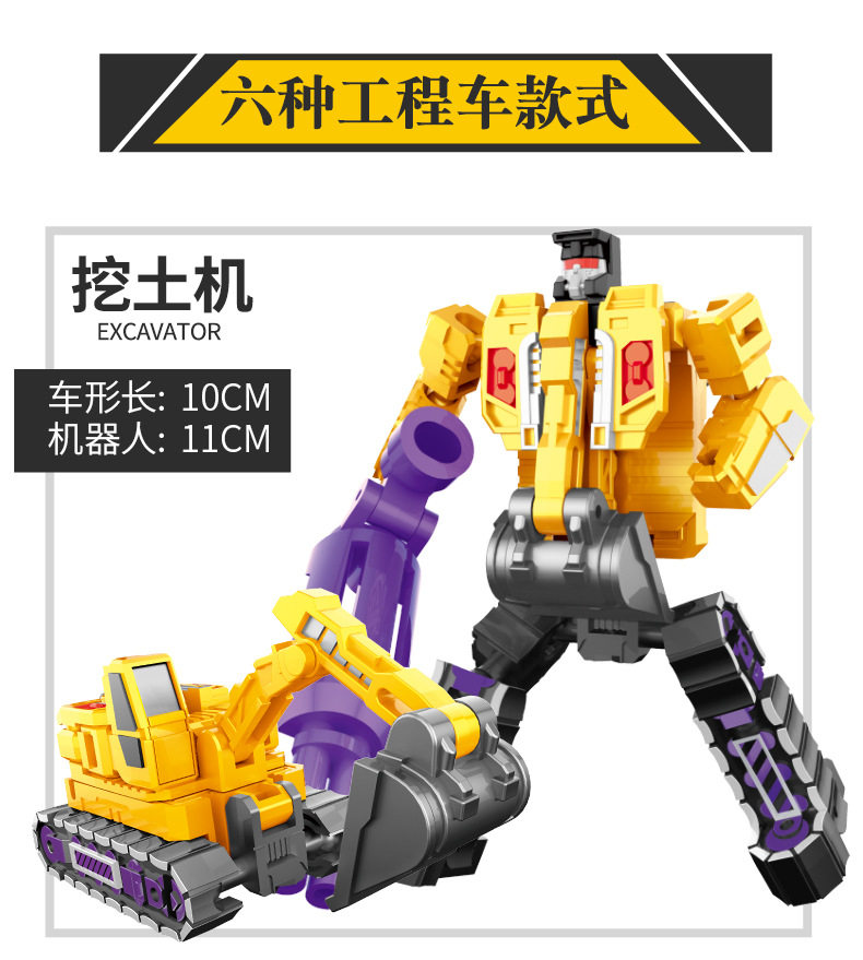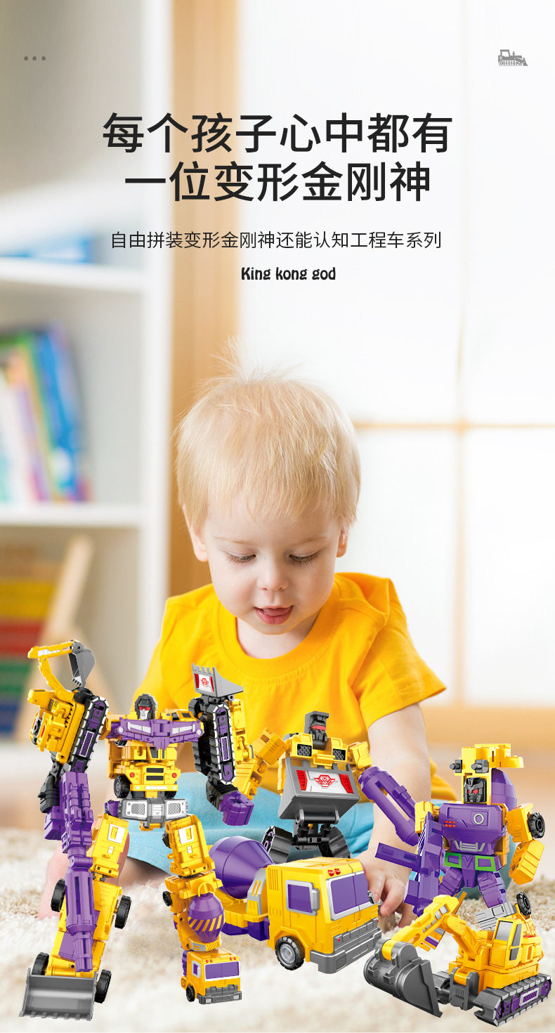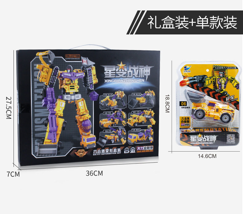 Yue Xing Alloy Engineering Vehicle Children's Transforming Robot Toy Mighty King Kong God Star Transforming into War God Six-In-One Set
