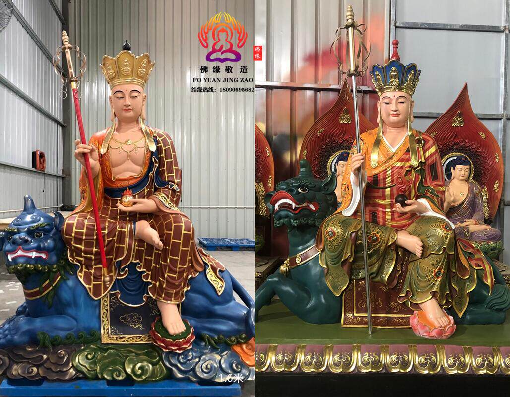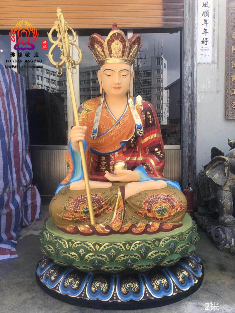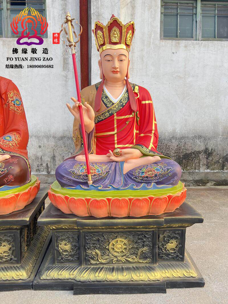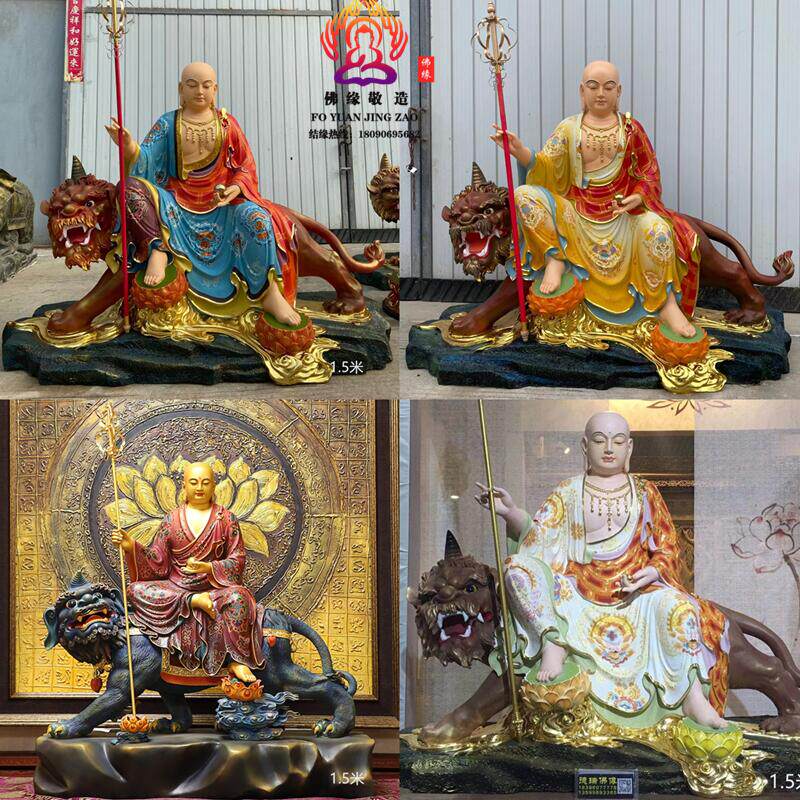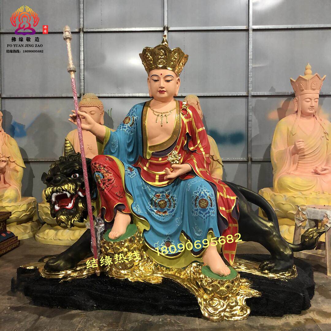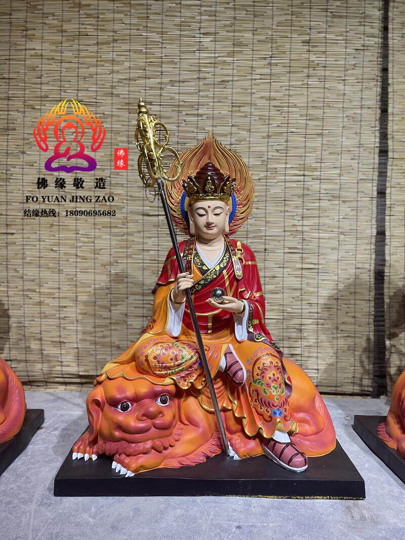 Ksitigarbha Bodhisattva Statue, Min Gong Daoming's Mount, Listening to the Dharma, Resin, Fiberglass, Wood Carving, Bronze Carving, Lacquer, Hollow-Carved Ornament