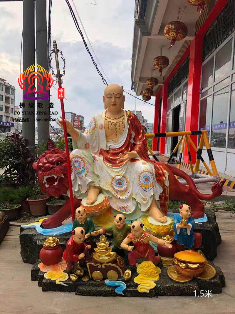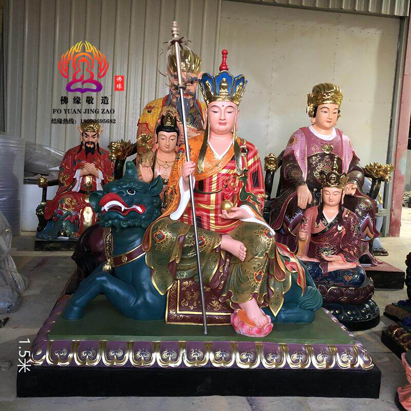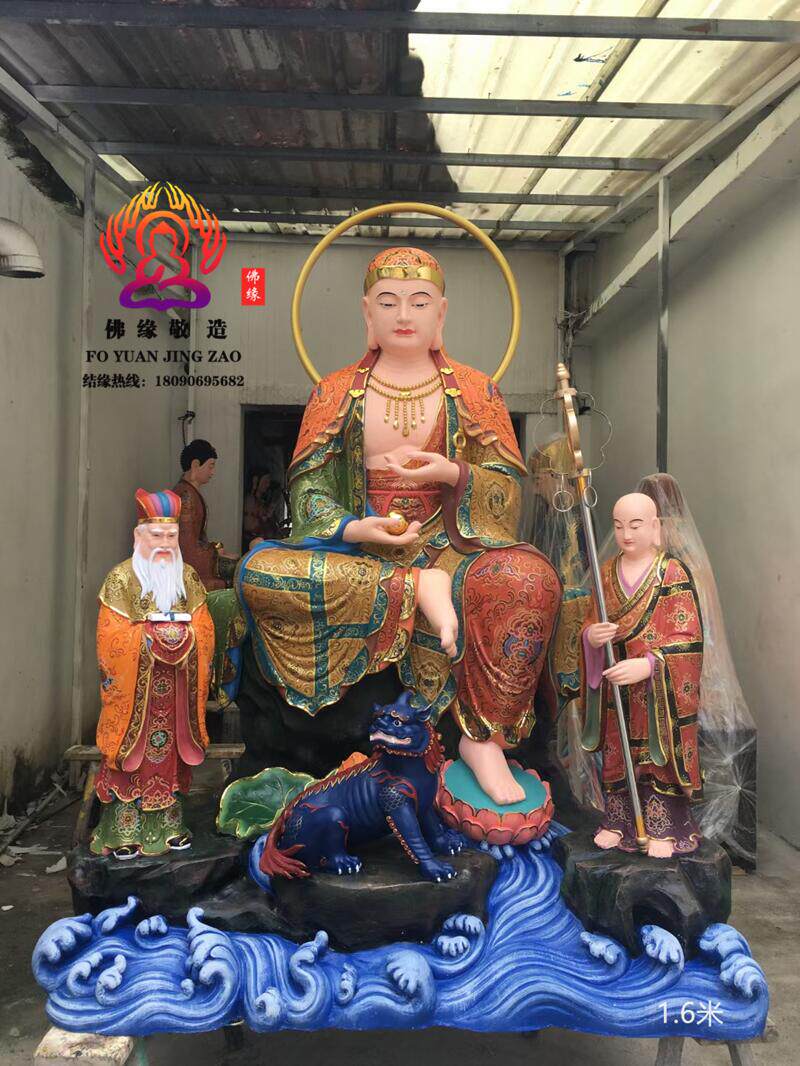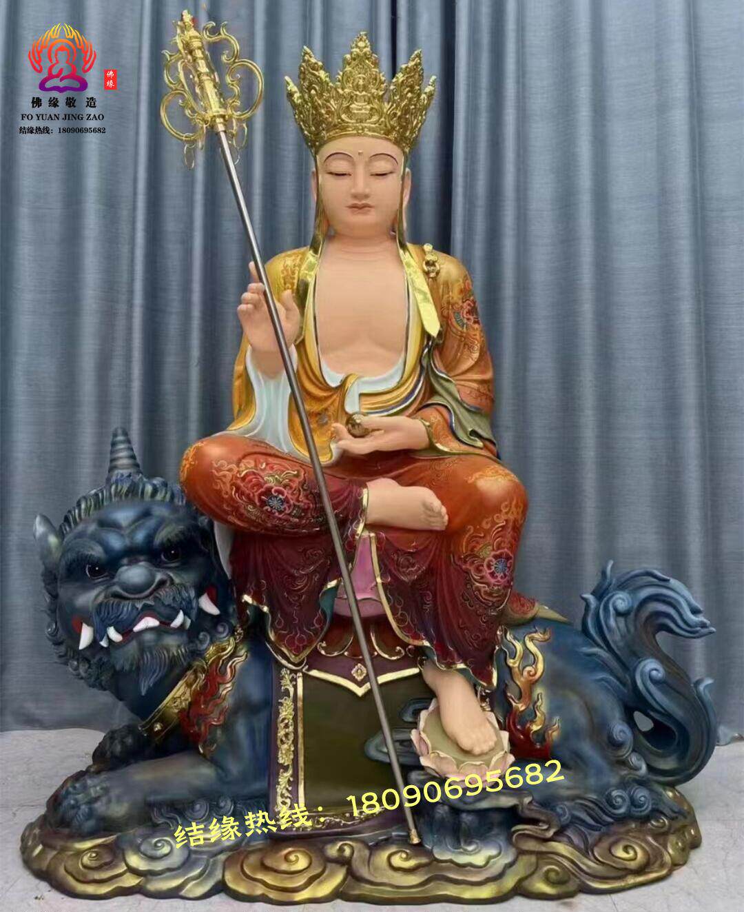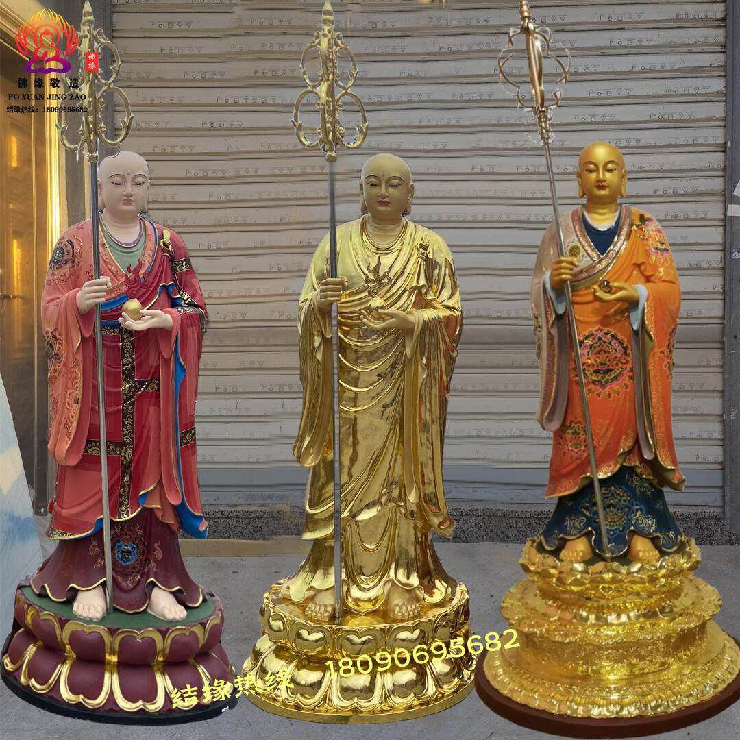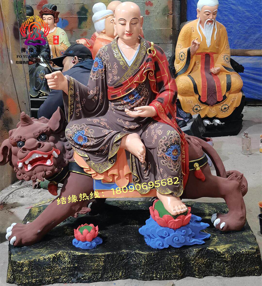 Ksitigarbha Bodhisattva Statue, Min Gong Daoming's Mount, Listening to the Dharma, Resin, Fiberglass, Wood Carving, Bronze Carving, Lacquer, Hollow-Carved Ornament