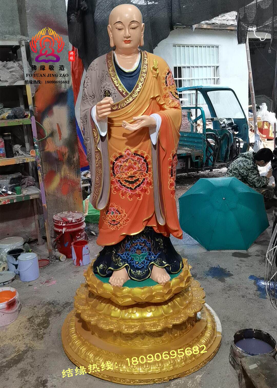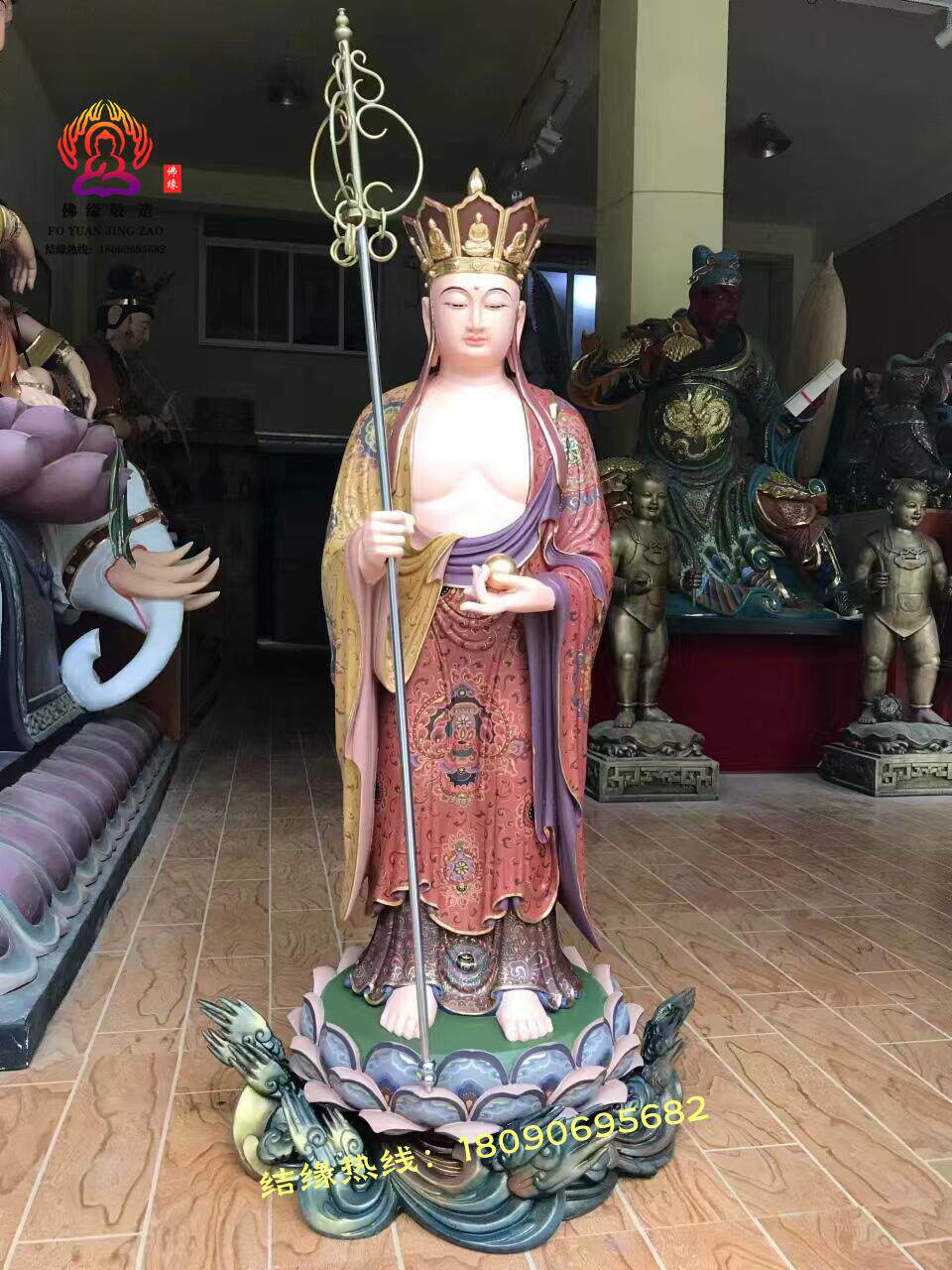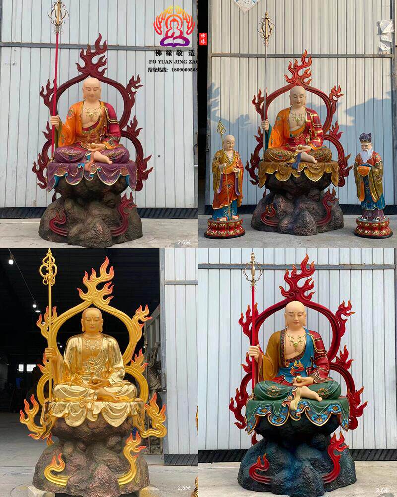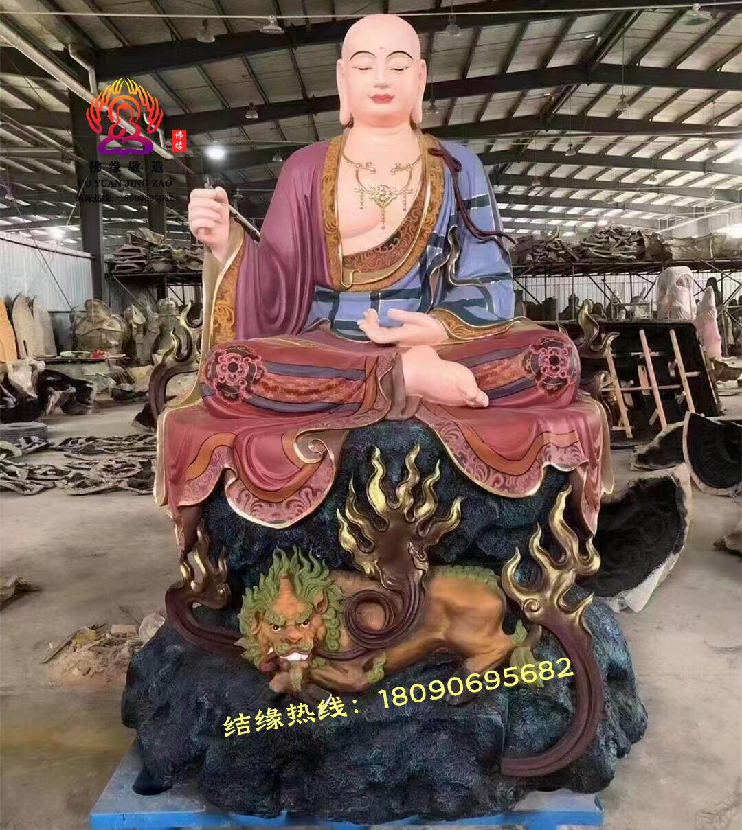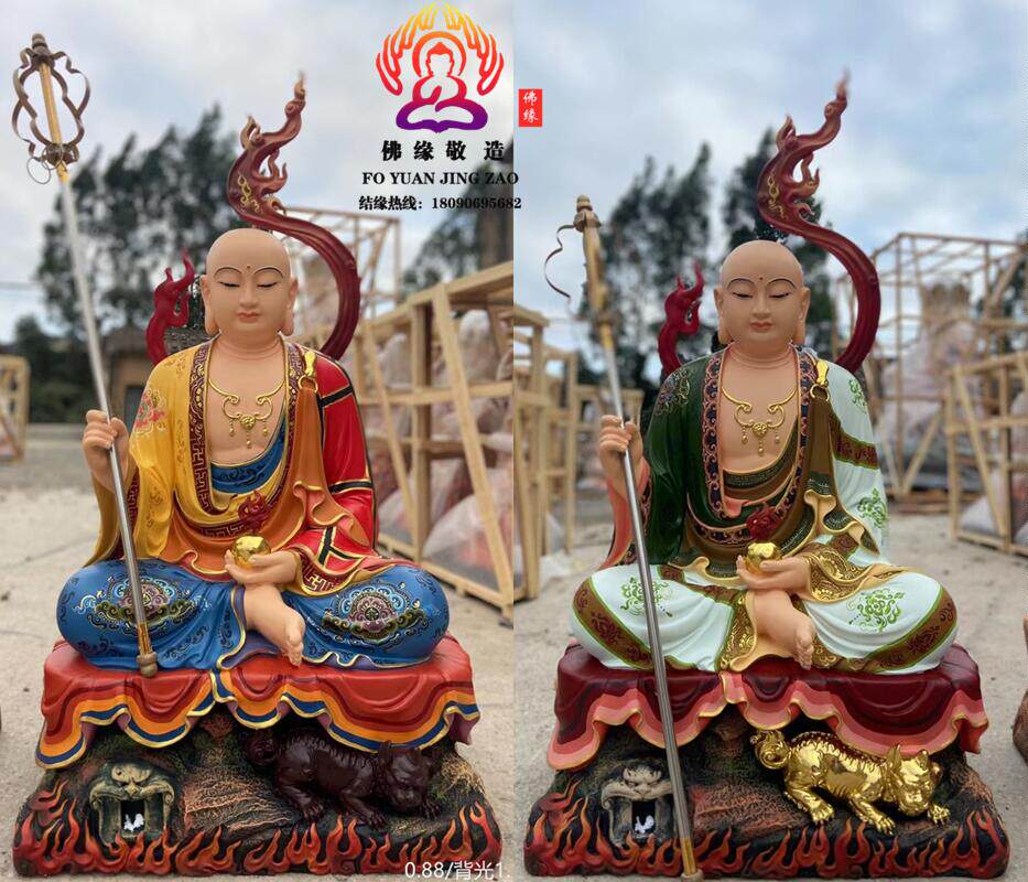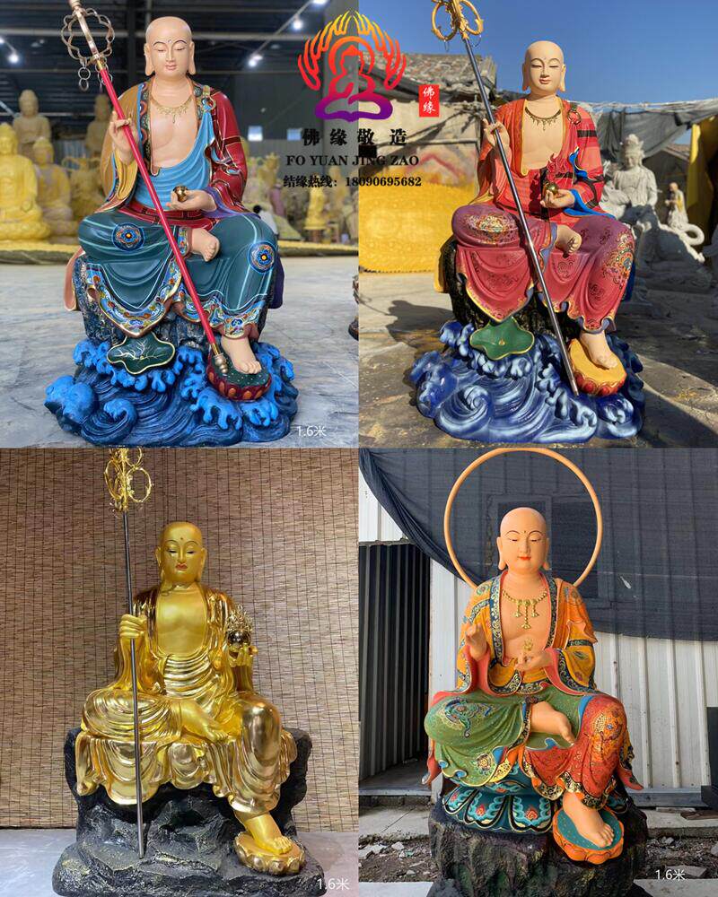 Ksitigarbha Bodhisattva Statue, Min Gong Daoming's Mount, Listening to the Dharma, Resin, Fiberglass, Wood Carving, Bronze Carving, Lacquer, Hollow-Carved Ornament