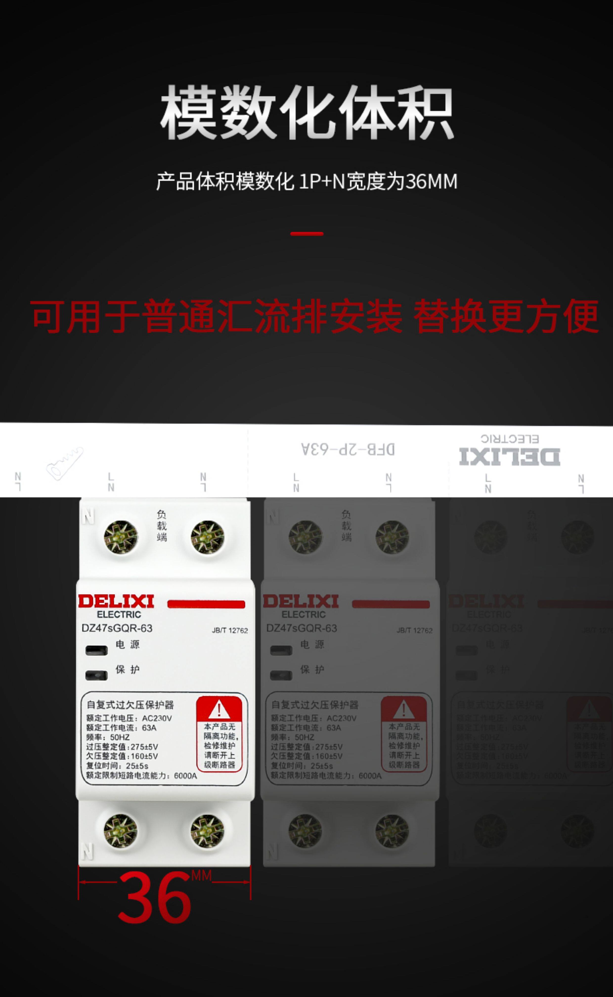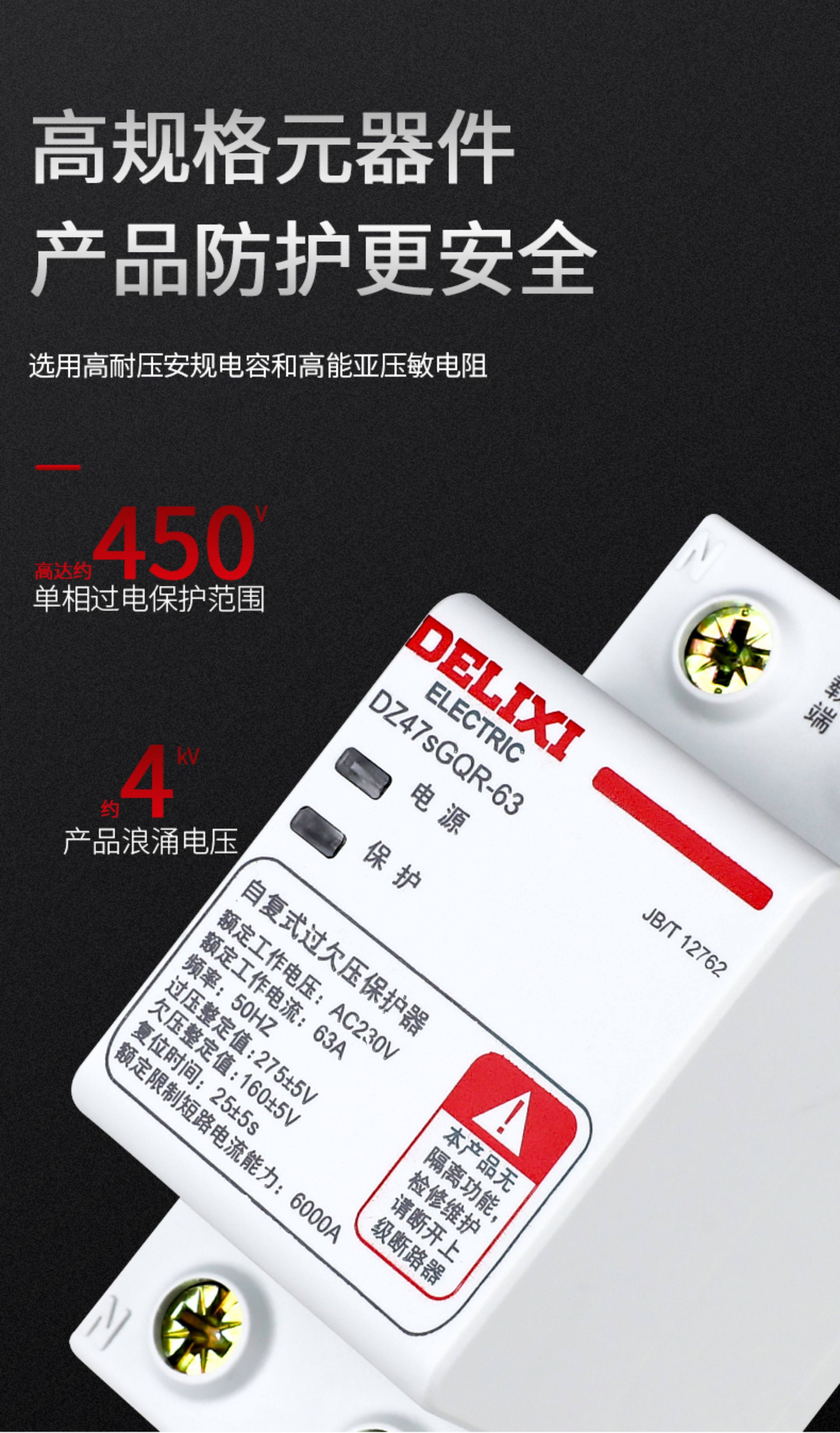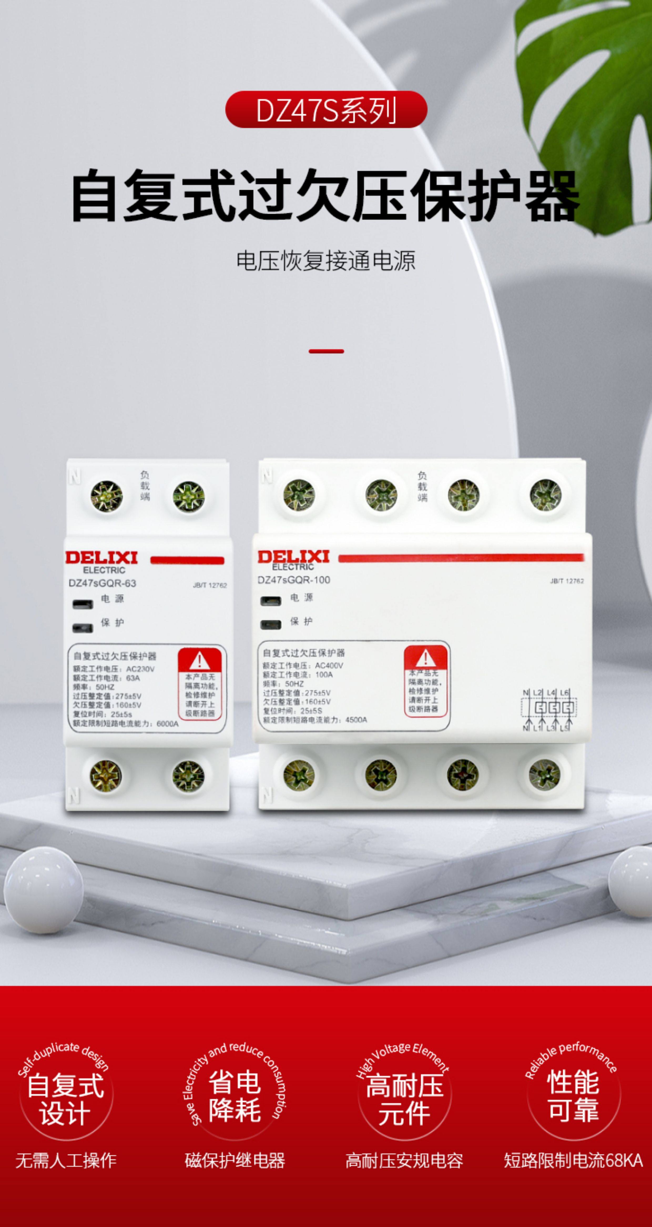 Delixi Circuit Breaker Self-Resetting over and under Voltage Protector Automatic Reset 40A 50A 63A Household Circuit Breaker 220V