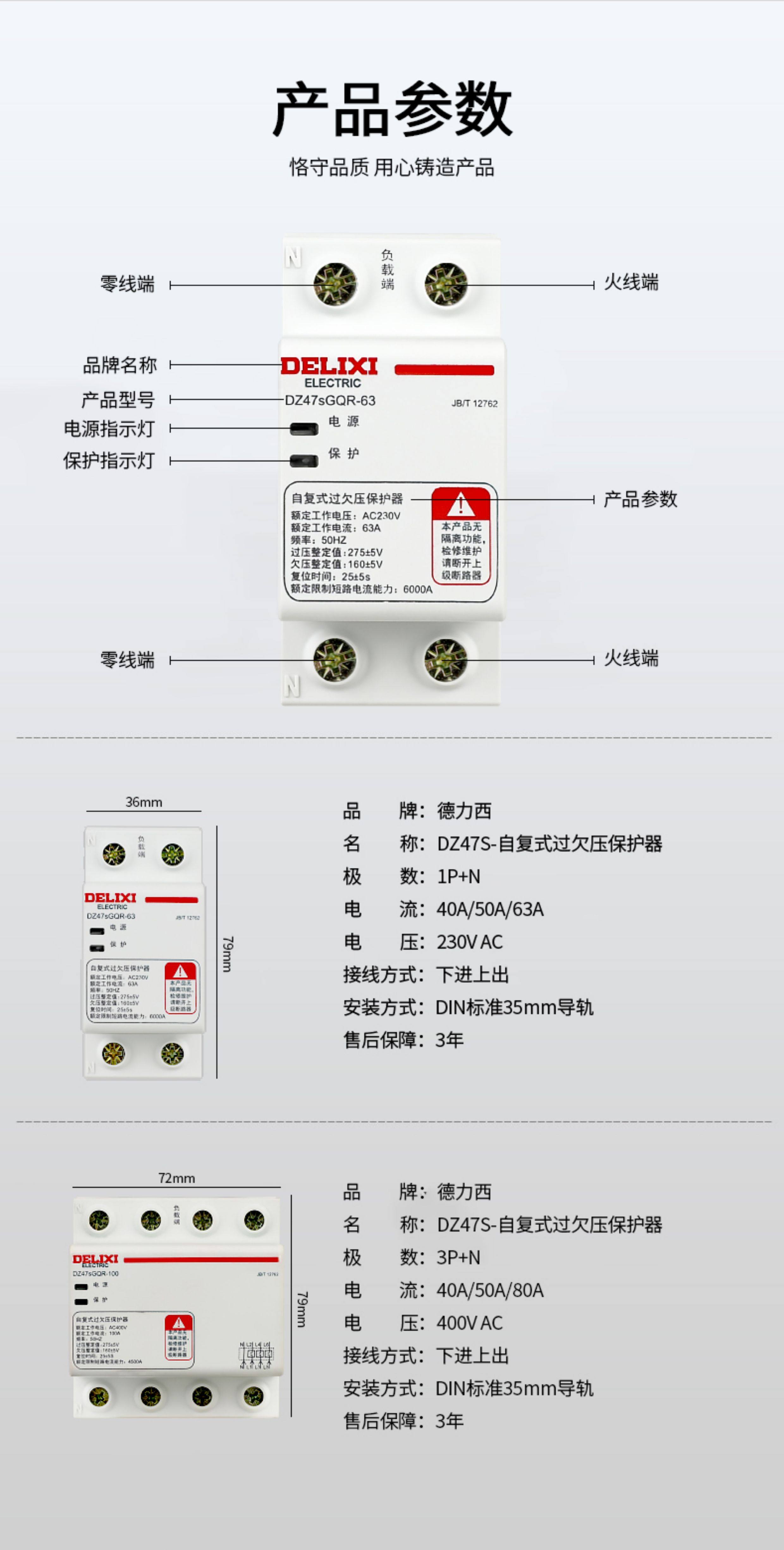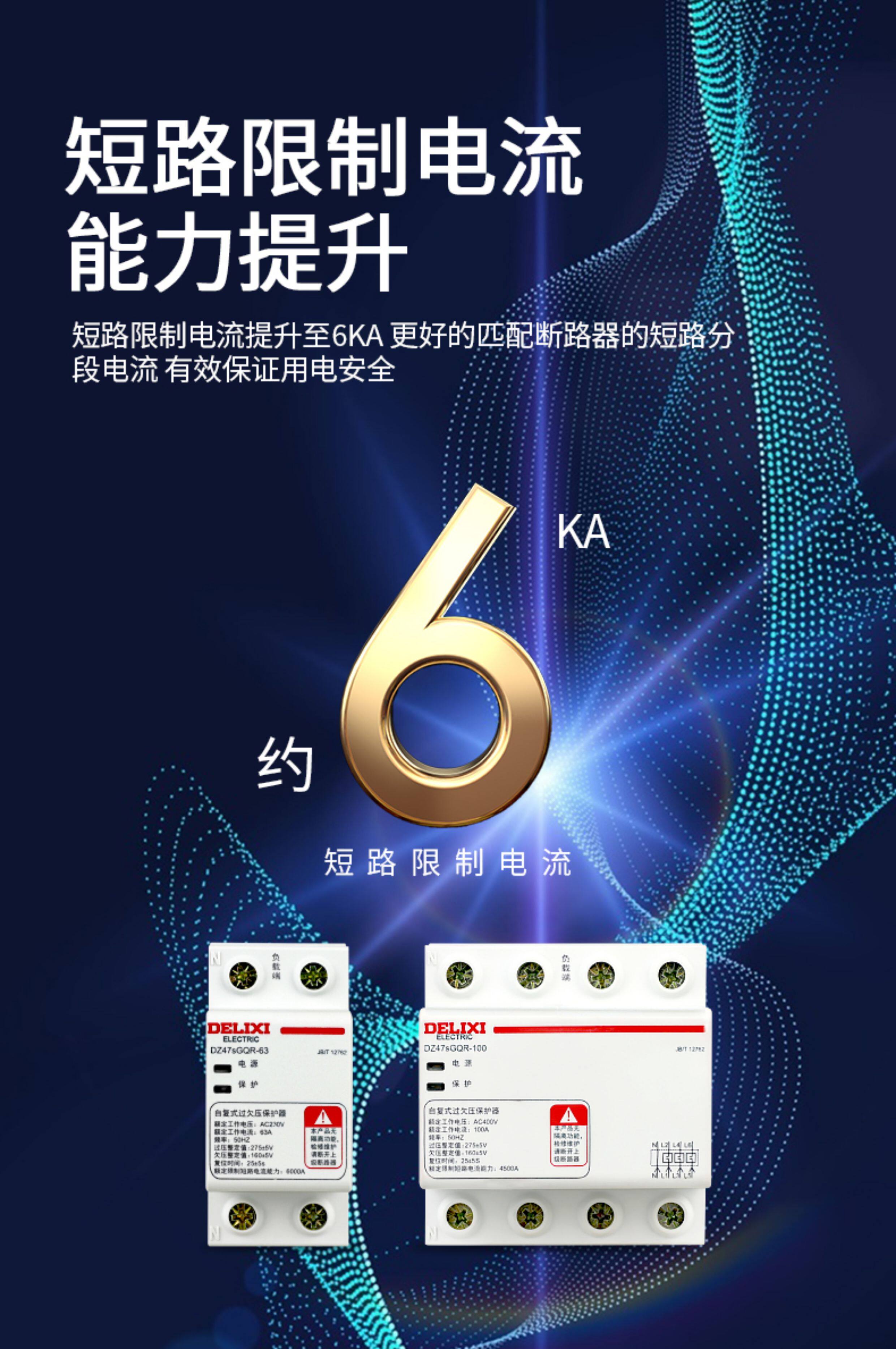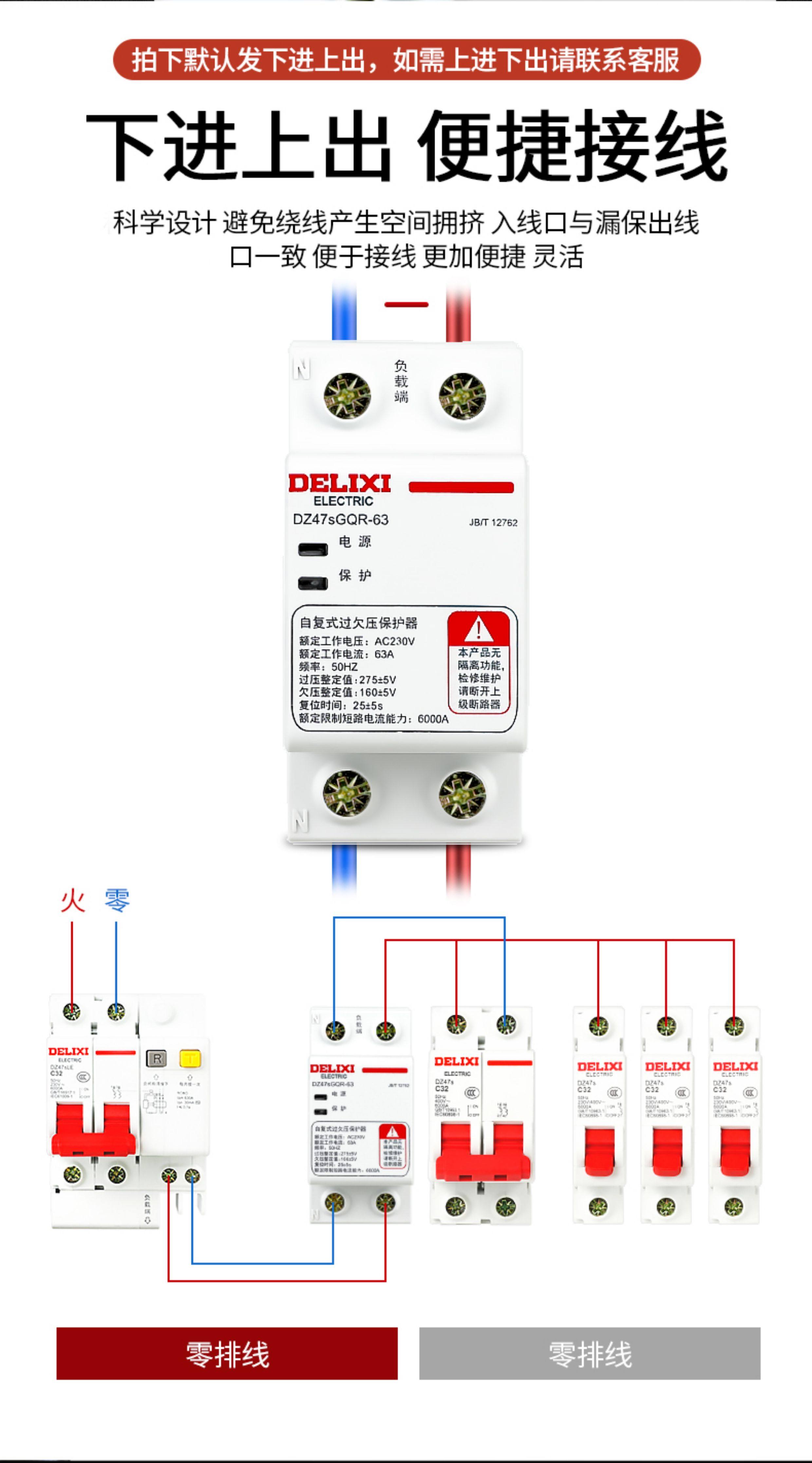 Delixi Circuit Breaker Self-Resetting over and under Voltage Protector Automatic Reset 40A 50A 63A Household Circuit Breaker 220V