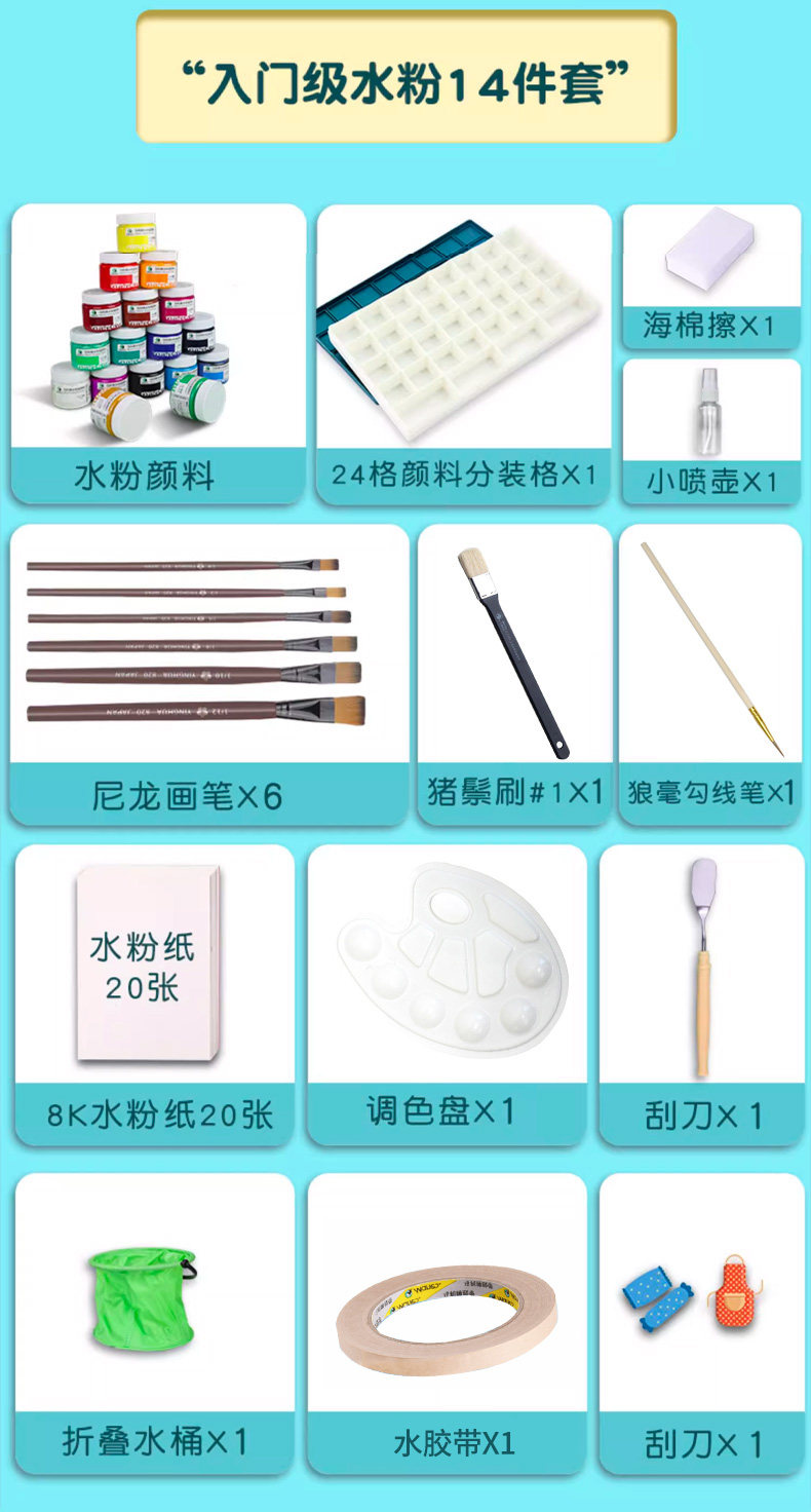 Color Classification G1100 Gouache Paint,Beginner's Gouache Paint Set - 10 Pieces,Entry-Level Gouache 14-Piece Set