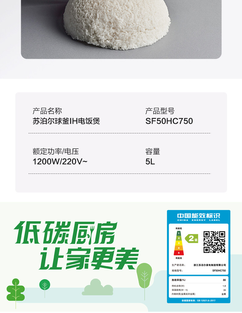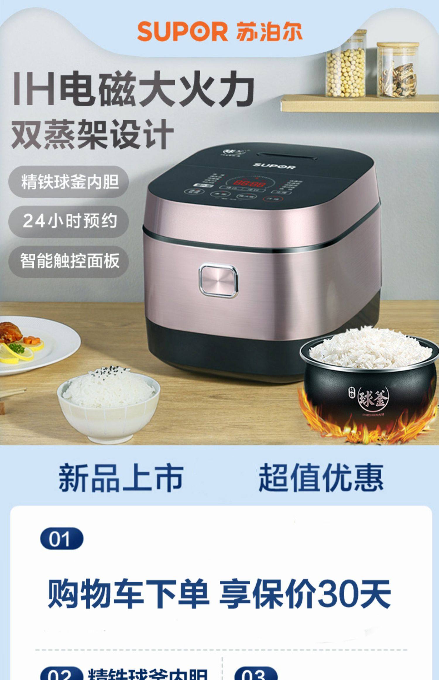 Supor Spherical Inner Pot Rice Cooker Multifunctional Household 5-Liter Large Capacity Rice Cooker Official Genuine Product