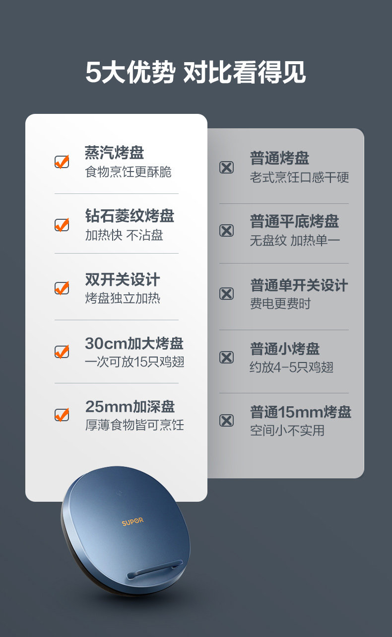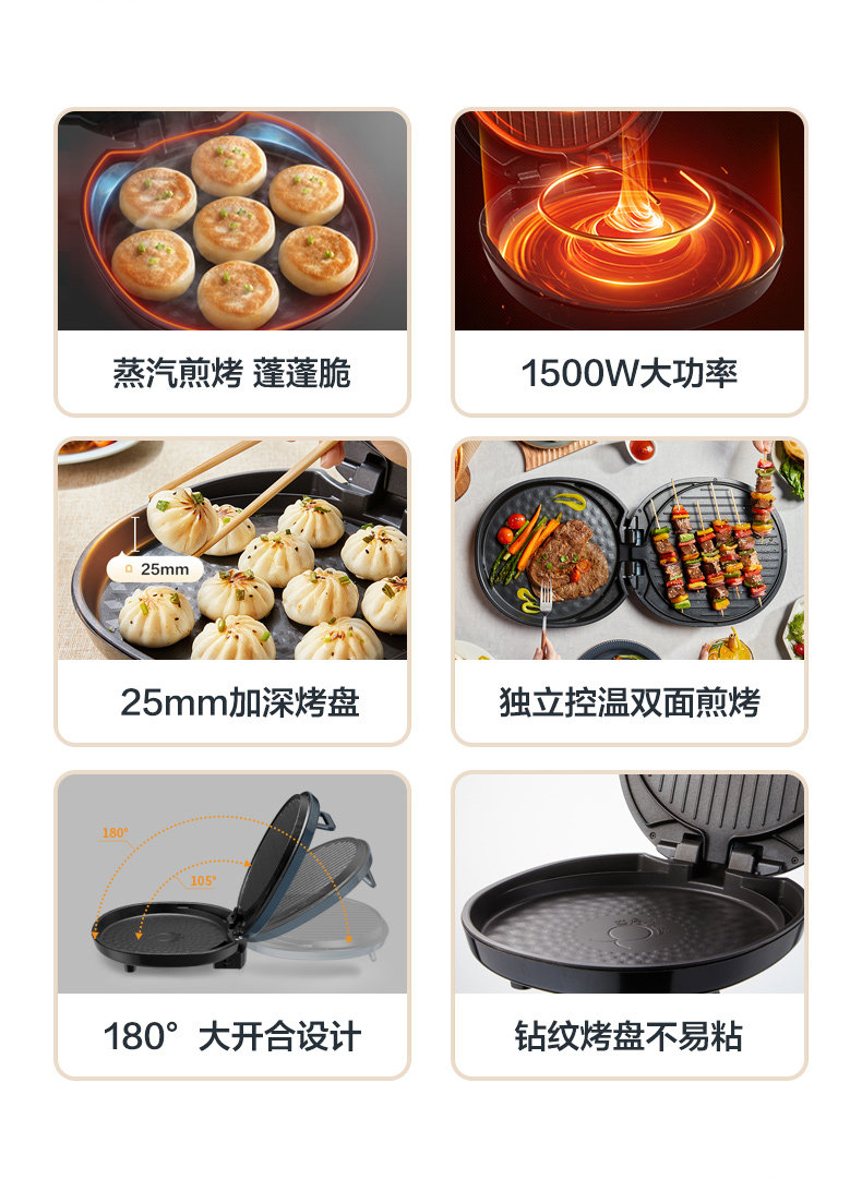 Supor Electric Griddle for Home Use, Double-Sided Heating, New Model for Making Pancakes and Crepes, Deepened and Enlarged, Official Flagship Store Genuine Product