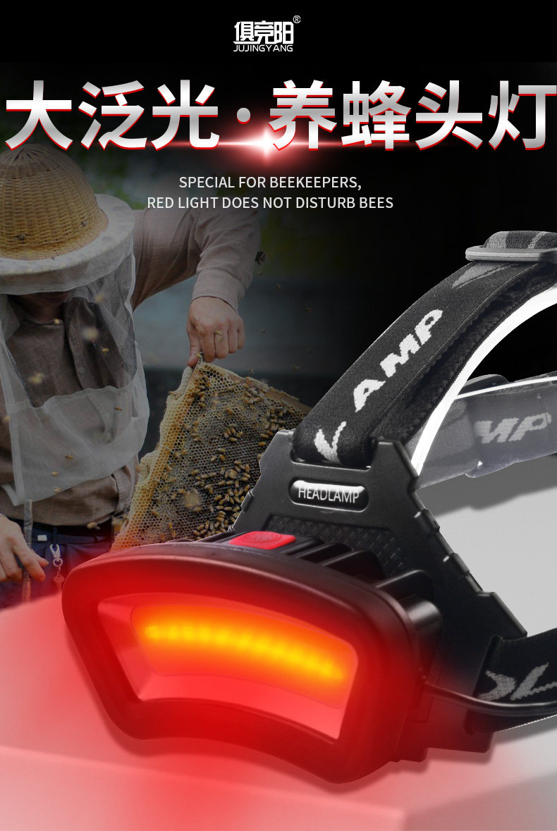 Red Light Beekeeping Headlamp, White Light, Ultra-Bright, Rechargeable, Long-Lasting Battery, Cob Large Floodlight Work Light, Night Fishing Led Miner's Lamp