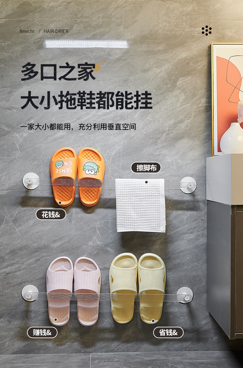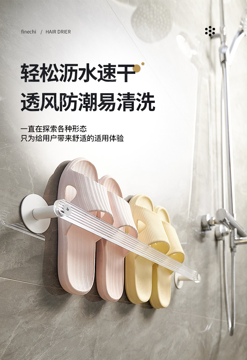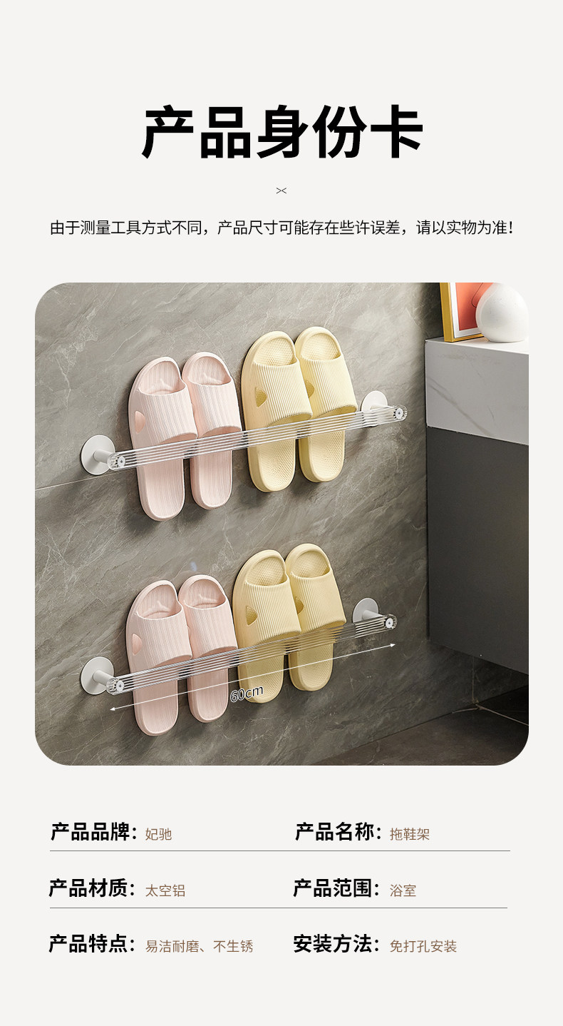 Bathroom No-Drill Slipper Rack, Bathroom Storage Rack, Shoe Storage Organizer, Toilet Wall-Mounted Hanging Rack, Drainage Rack