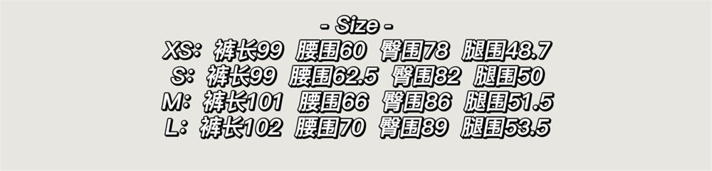 Outseam (cm) 99 cm 101.5 cm 104 cm 106.5 cm 109 cm