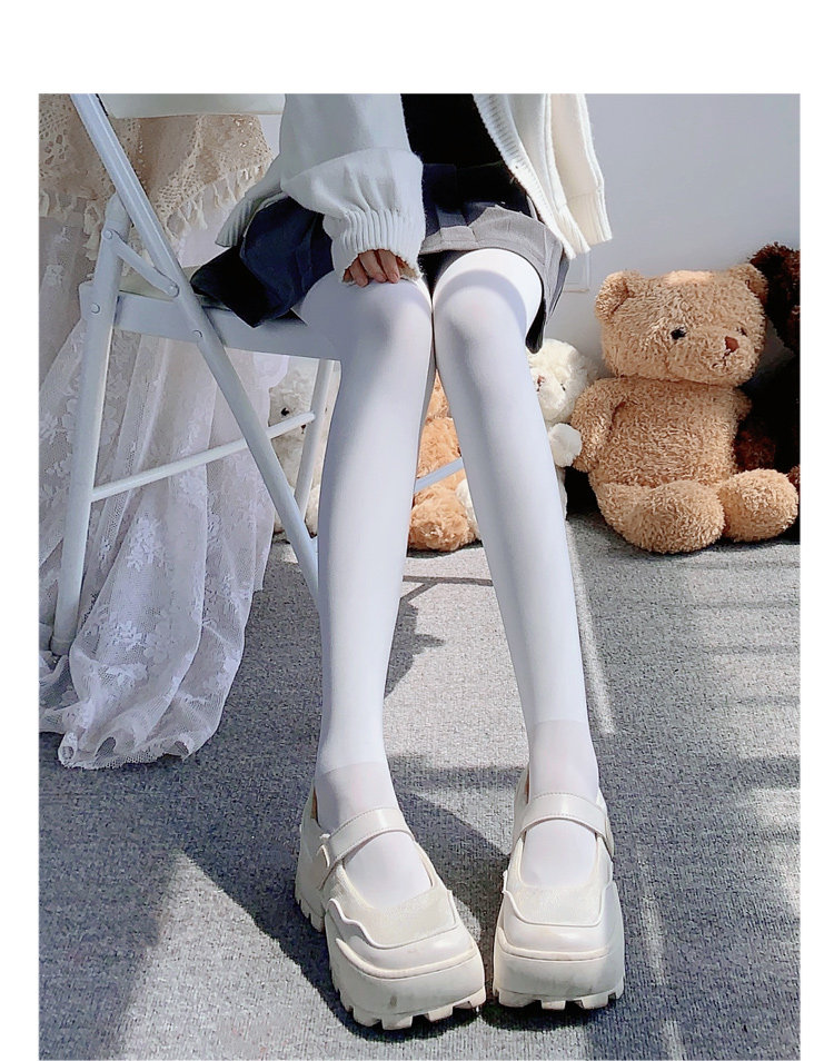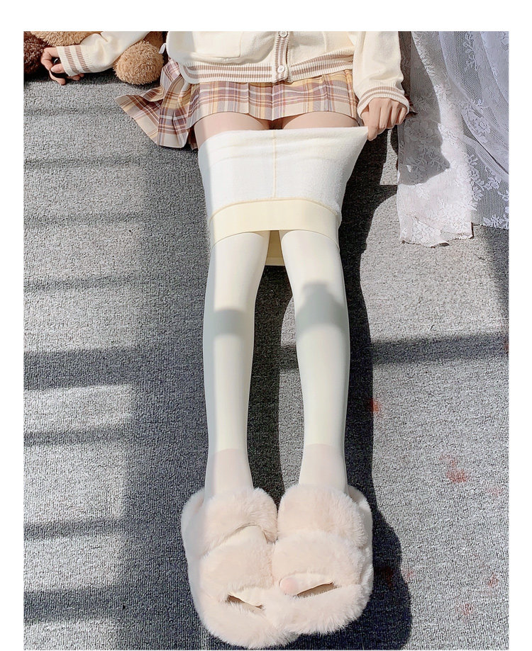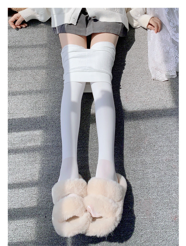 Lolita Autumn and Winter Fleece-Lined Thick White Stockings Pantyhose Girl's Sweet Style Outfit Milky White Pantyhose