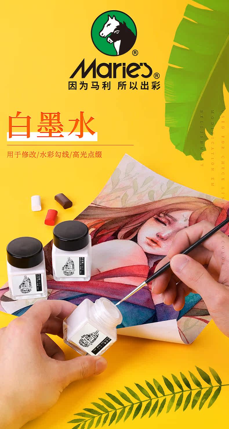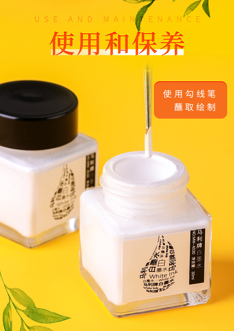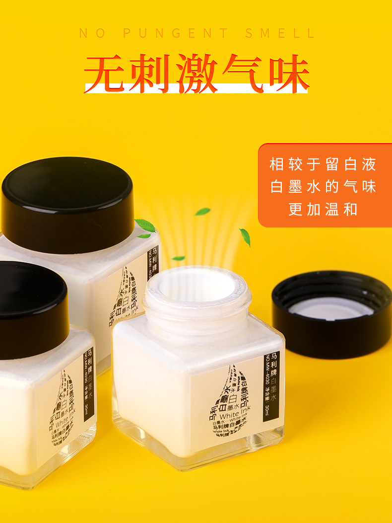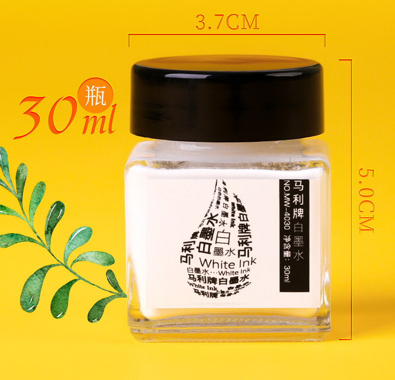 Marley Brand 30ml White Ink, Quick-Drying High-Gloss Ink, Watercolor High-Gloss Liquid, Painting White Pigment Covering Liquid, Beginner Student White Comic Starry Sky Blanking Liquid, Art Student Professional Use for Traditional Chinese Painting