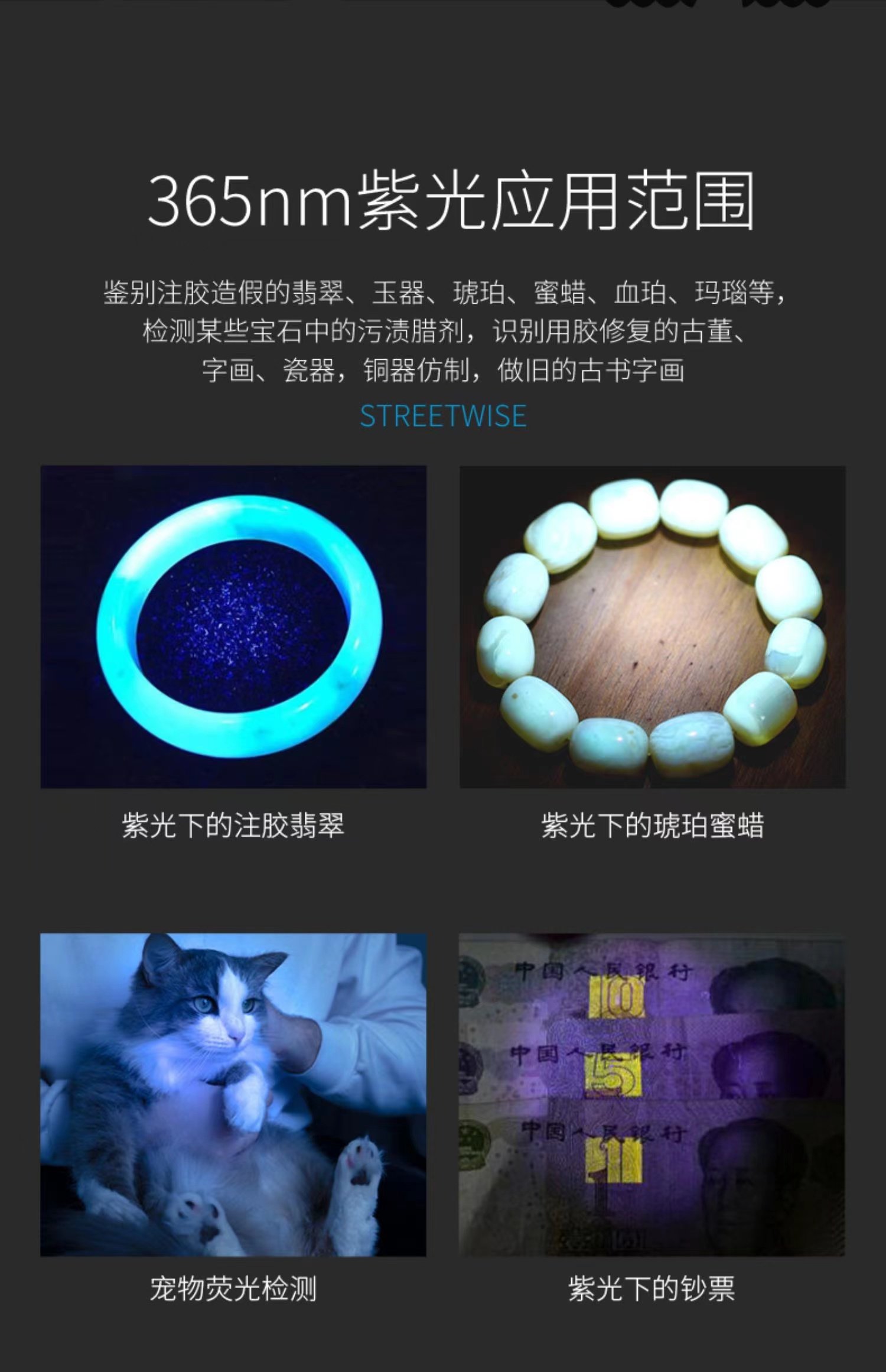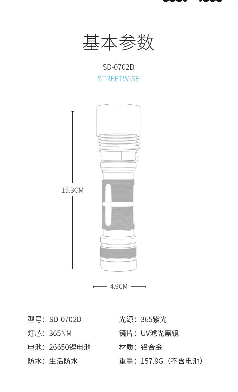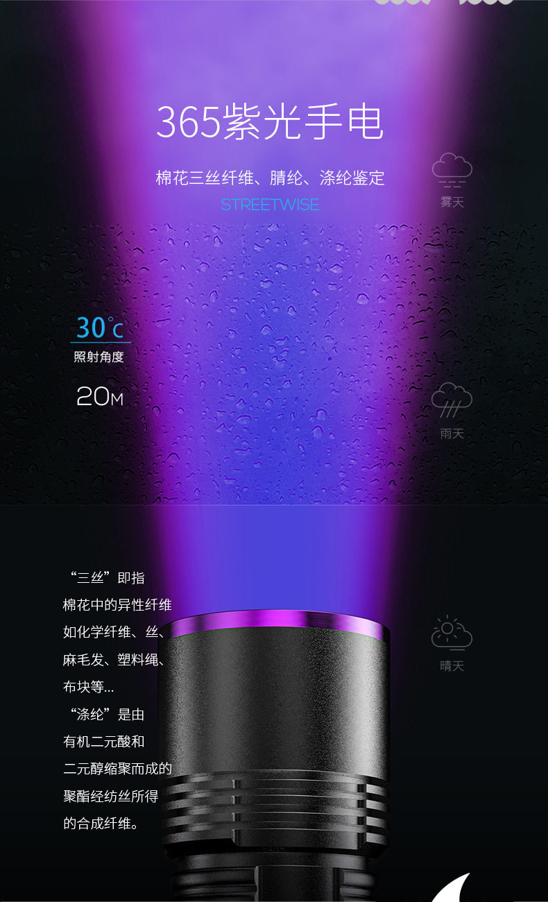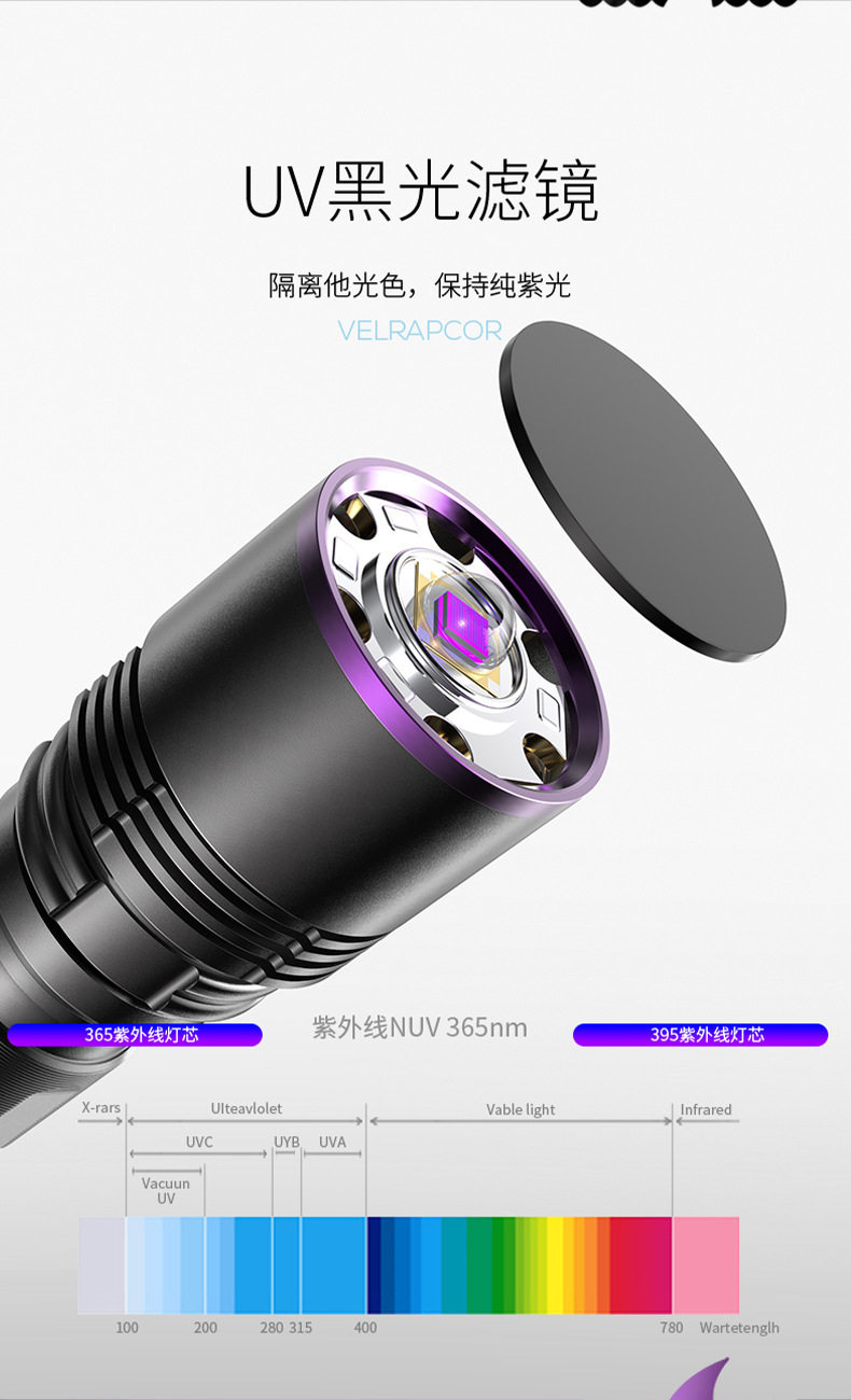 Fluorescent agent purple light flashlight banknote detection aflatoxin ultraviolet flashlight high precision digital display bacteria tester