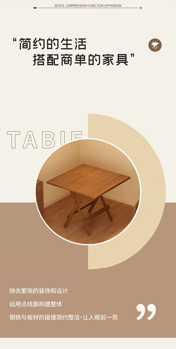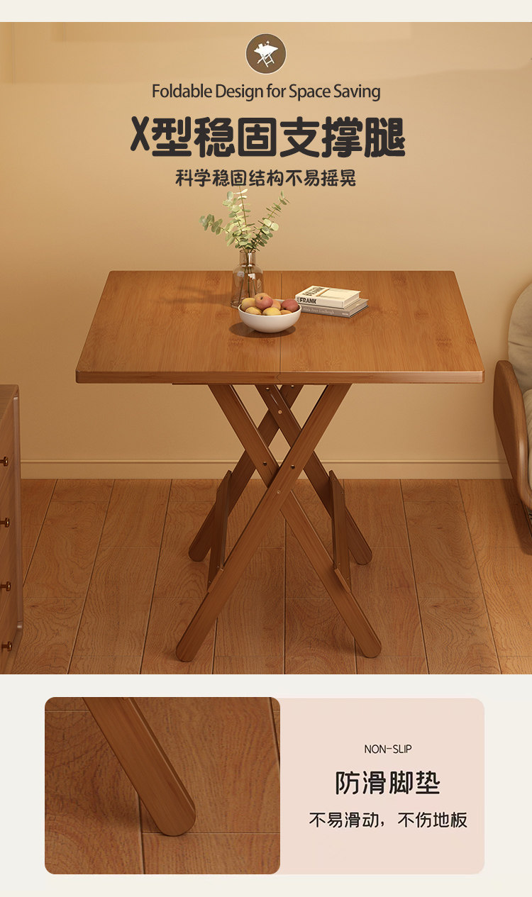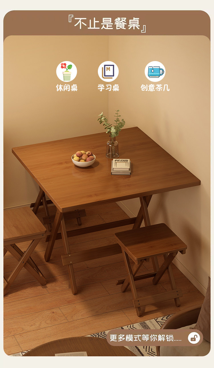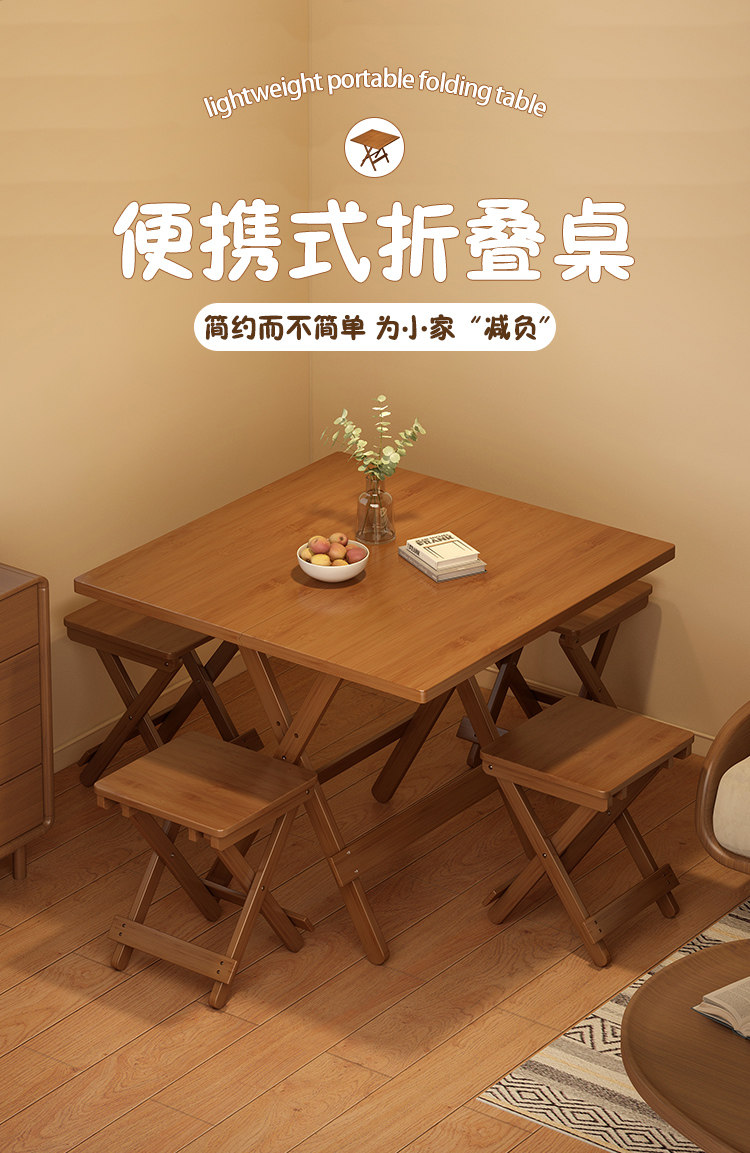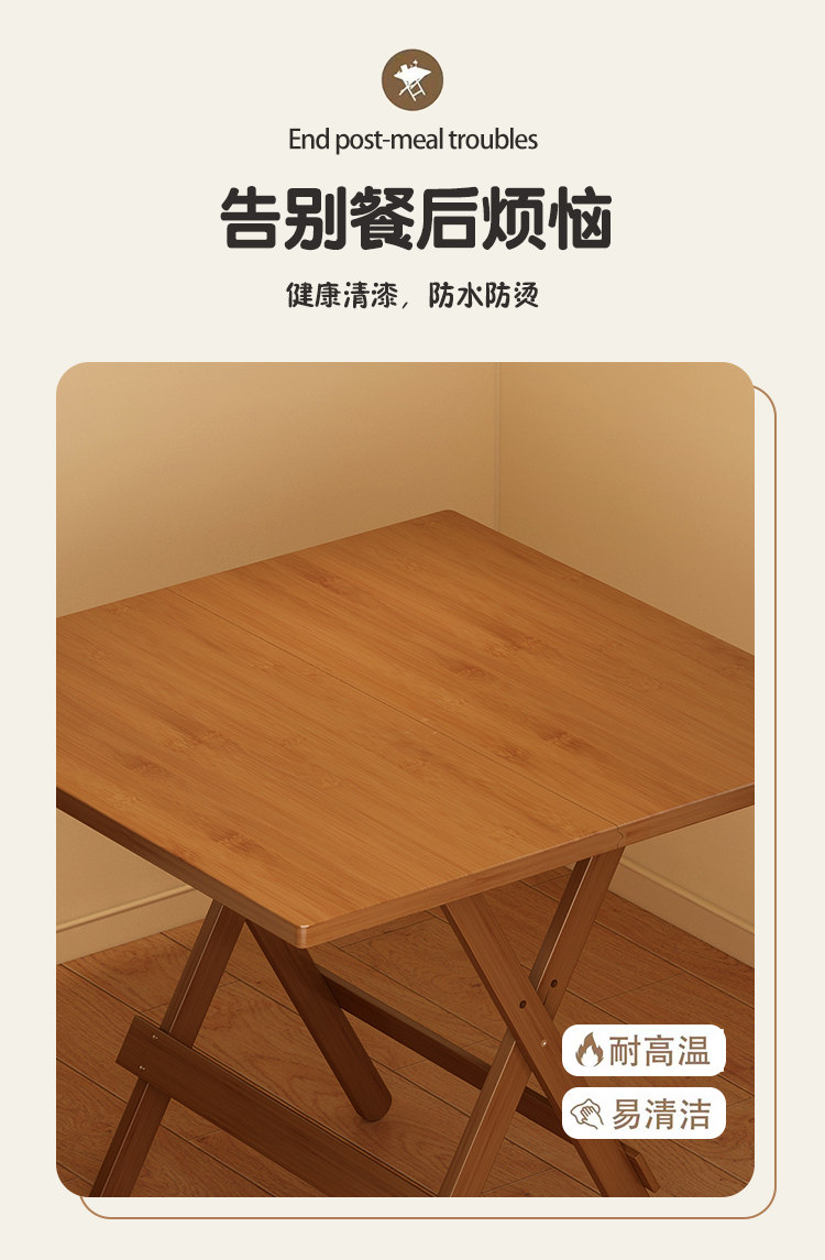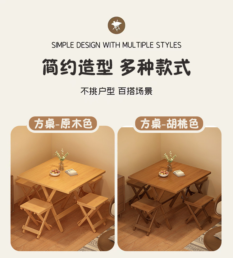 Folding Table Square Table Small Apartment Solid Wood Portable Outdoor Balcony Dining Table Stall Dining Table Home Use 2026 New Model
