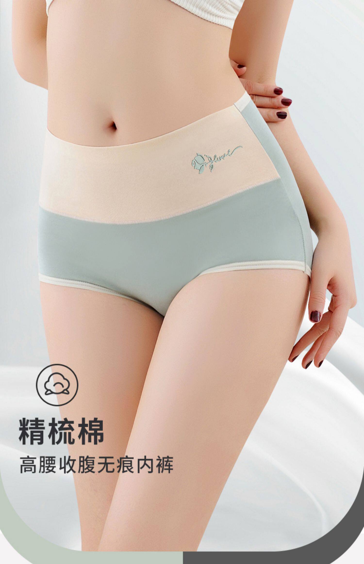 Women's Pure Cotton Underwear, Summer Thin Style, All-Cotton Antibacterial Crotch, High-Waisted, Tummy Control, Hip-Lifting, Tummy-Slimming, Plus-Size Briefs