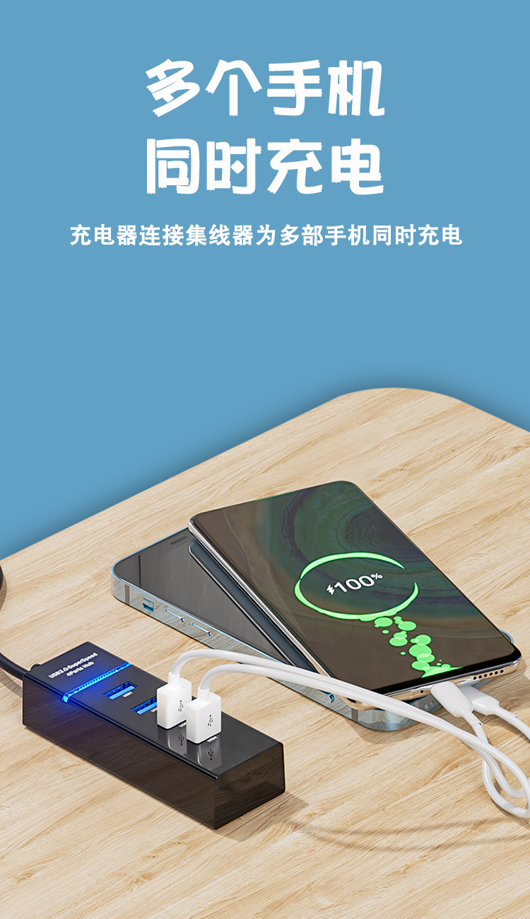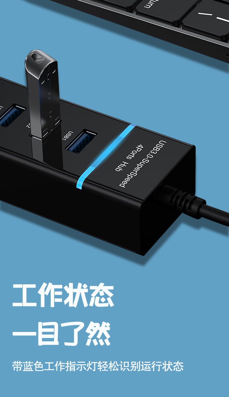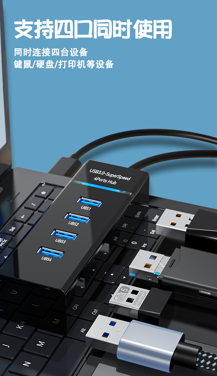 Suitable for USB 3.0 Hub Splitter Adapter with Multiple 7-Port Type-C Laptop Hub Docking Station Plug, USB External Drive One-To-Four USB Interface Long Extension Adapter