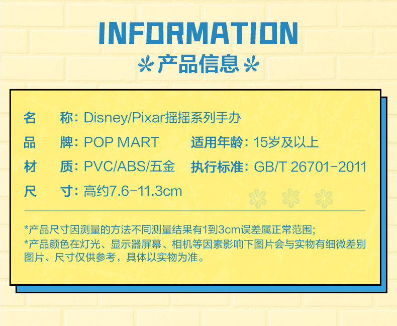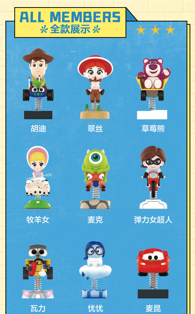 Style description Brand new and unopened single random blind box,Hudy,Tris,Strawberry bear,shepherdess,Mike,Elastigirl,WALL-E,Worry,Maikun,Ronaldinho and Kevin,marlene and nemo,Mig,Hidden style-Qiao Gaona,Twelve basic models unboxed and unpacked,Brand new and unopened in a plastic box (highly likely to be hidden)