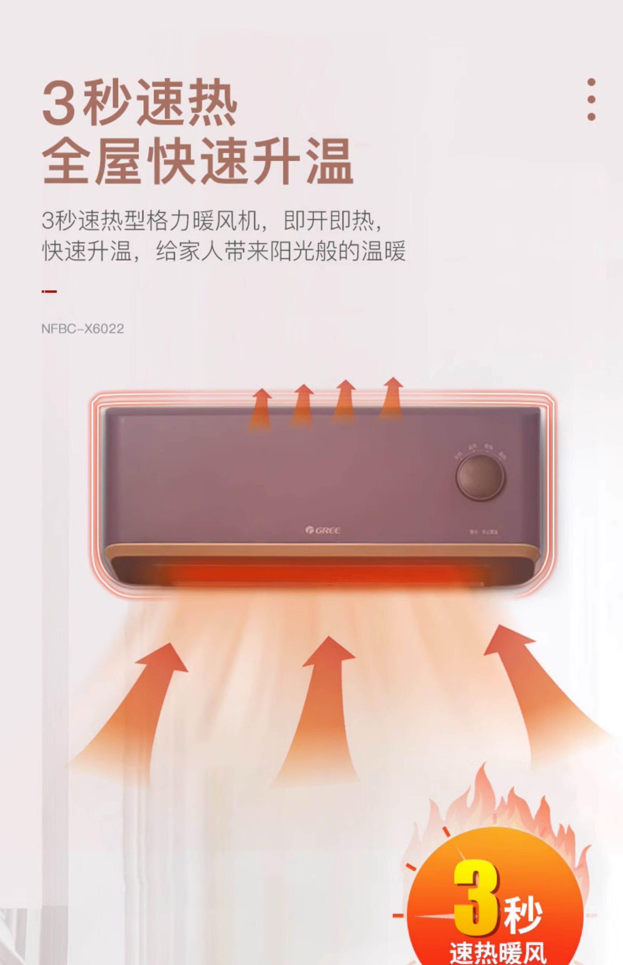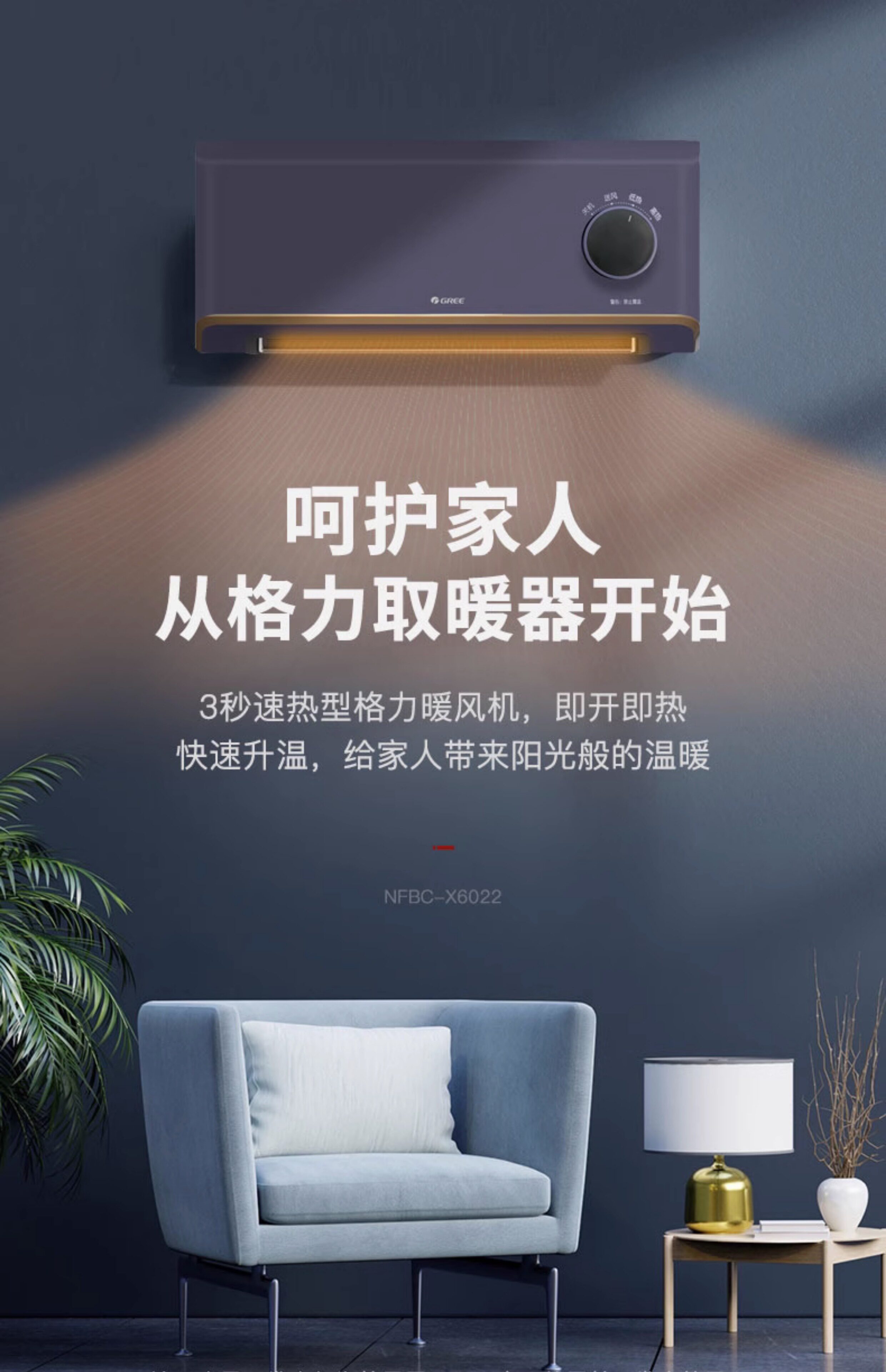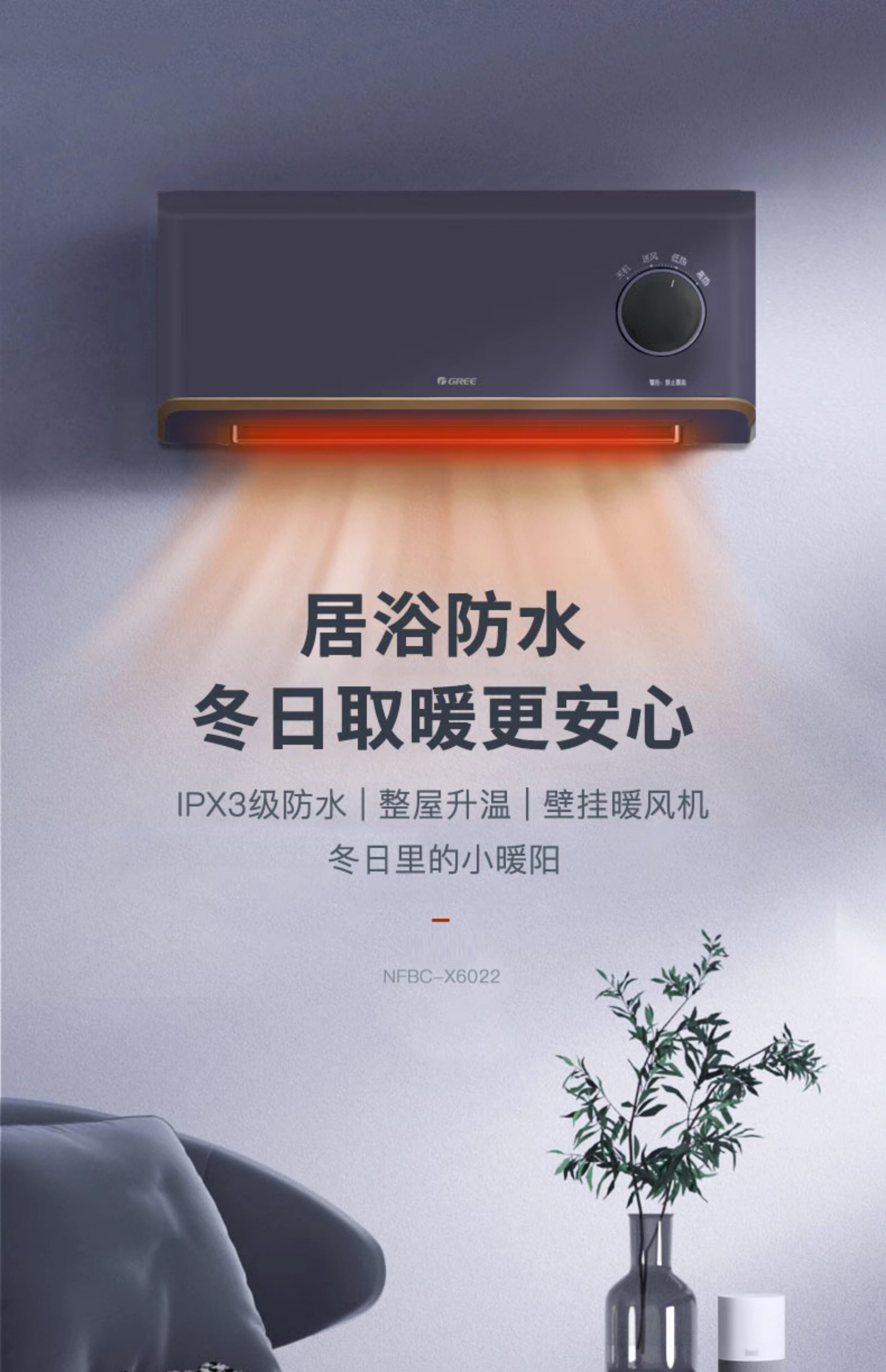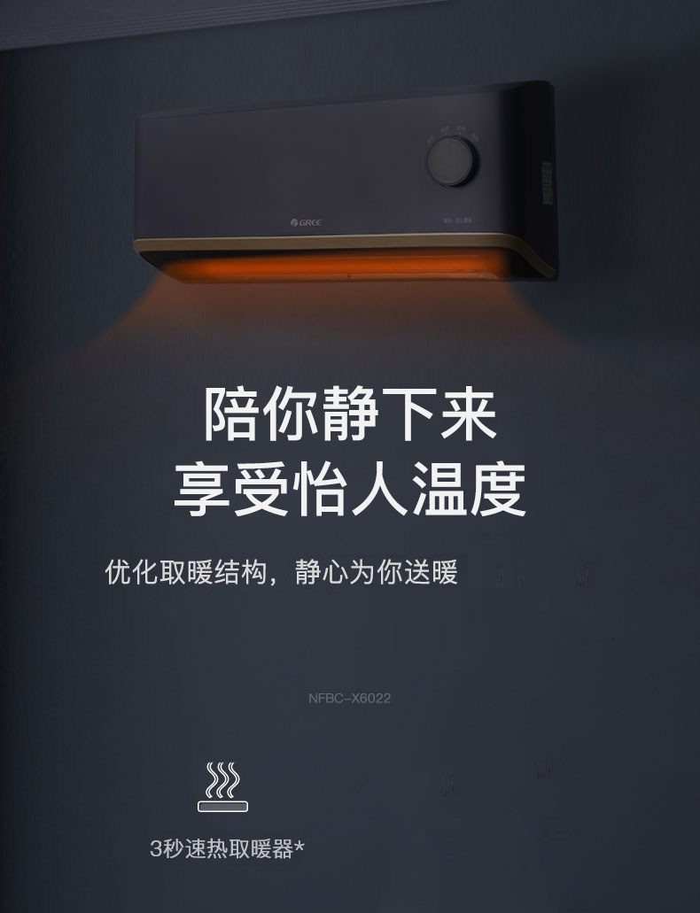 Gree Wall-Mounted Electric Heater Fan Heater Fast Heating Electric Heater Waterproof Electric Heater for Home and Bathroom