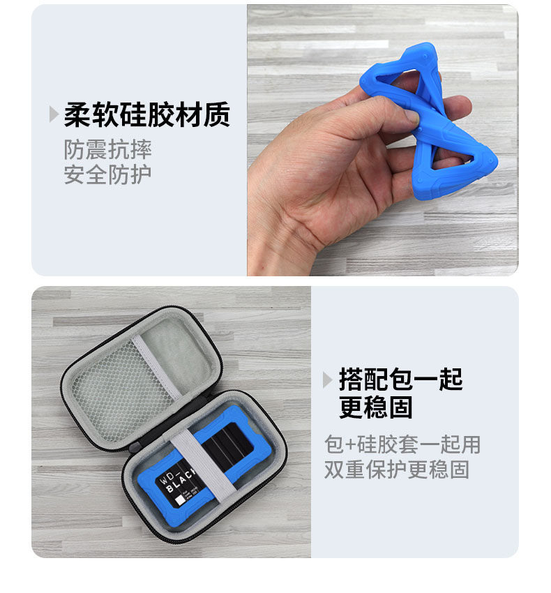 Suitable for Wd Western Digital P40 Gaming Mobile Solid-State Drive Protective Case Wd_Black P40 Game Drive Ssd Storage Bag Western Digital Anti-Drop Silicone Case Black Disk Shockproof Box