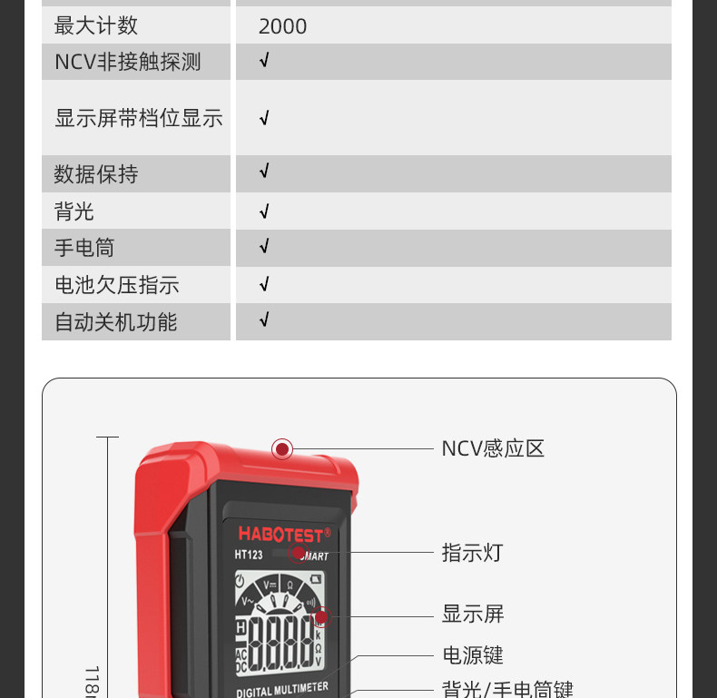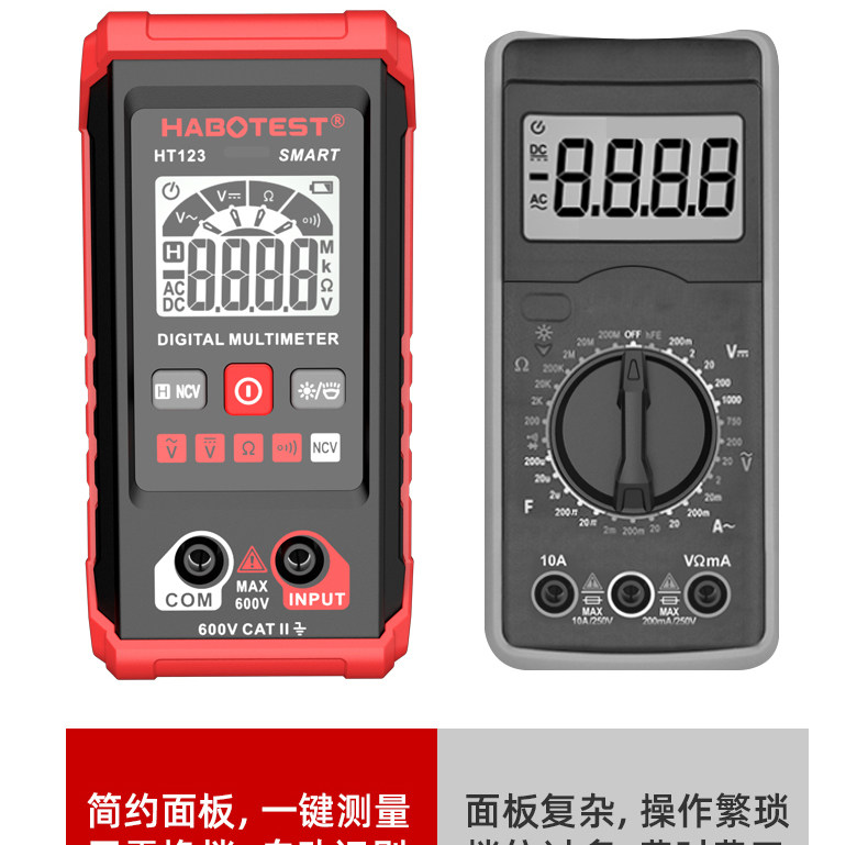 Habotest Ht123 Pocket-Sized Intelligent Fully Automatic Anti-Burn Digital Multimeter - No Need to Switch to a Beginner's Meter