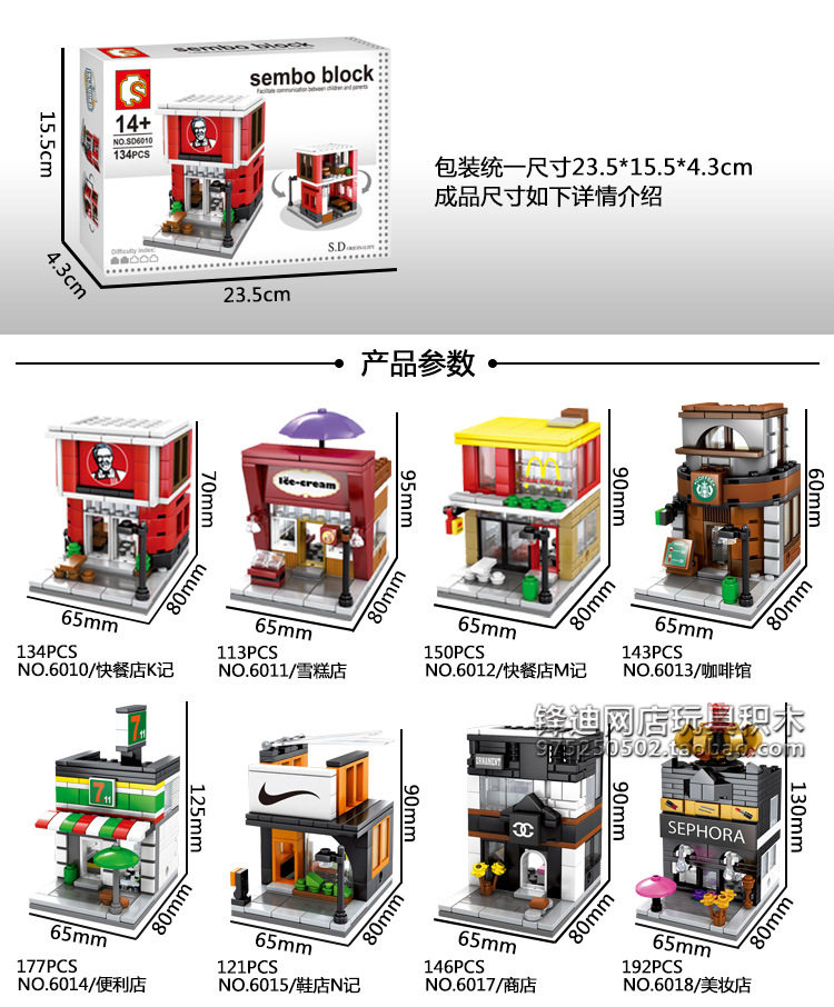 Senbao Building Blocks Street Scene Building Blocks City Boy Children's Gift Toy Small Particle Assembly 6010-6099