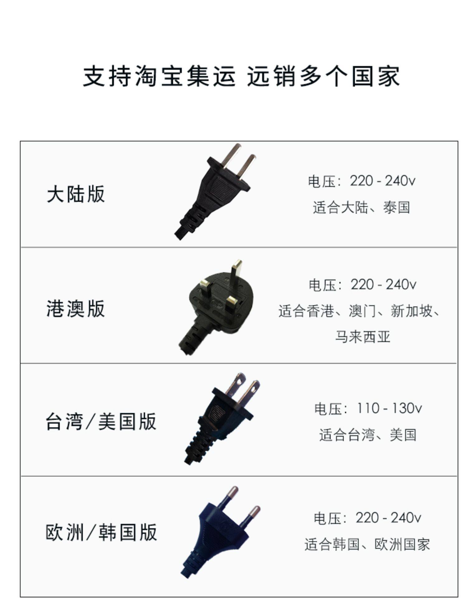 Plug Type 220V Hong Kong and Macau Version Malay English Regulations,110V Taiwan Version,Domestic Flat Plug