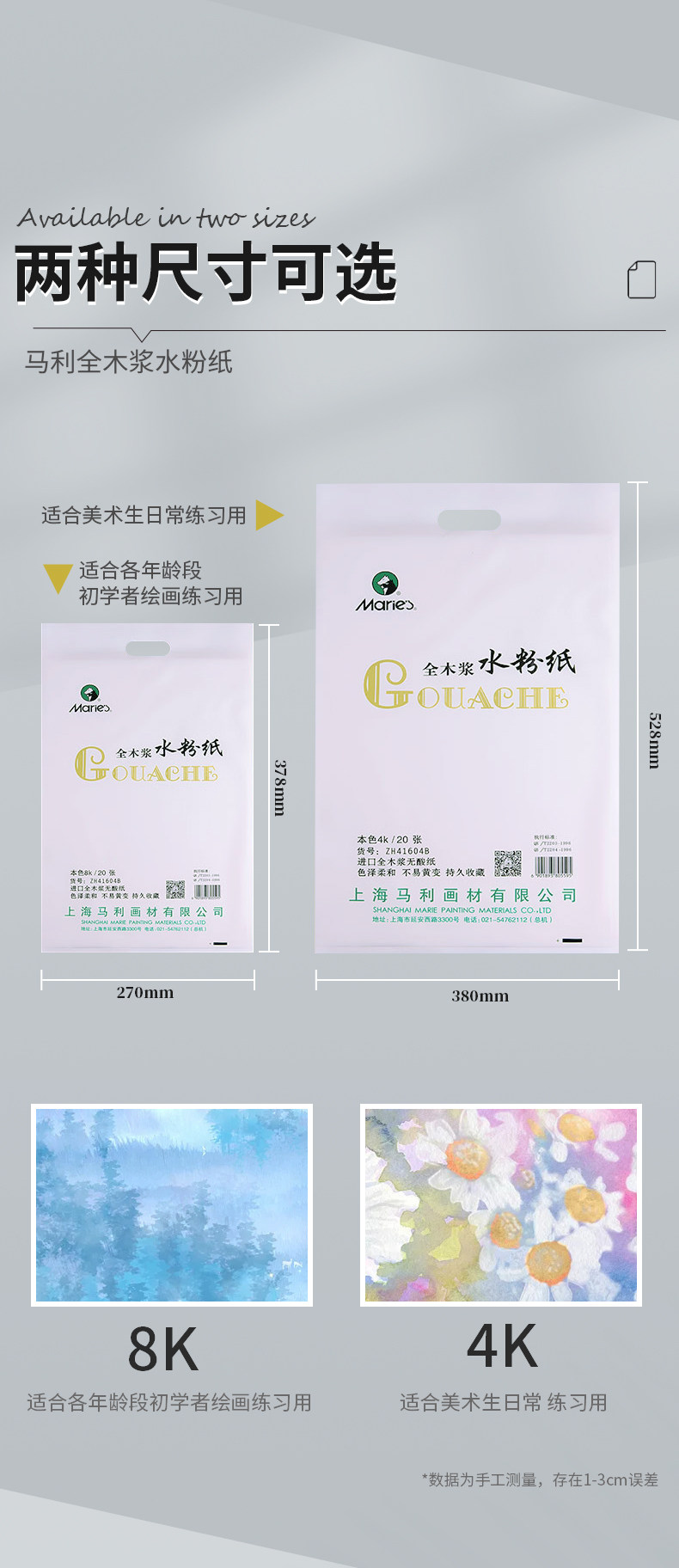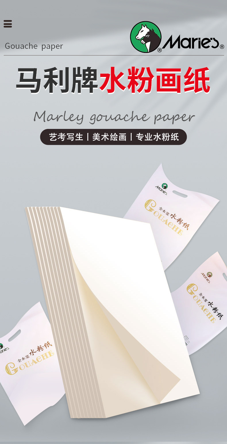 Marley Brand Professional 8K/4K Gouache Paper, 8K/4K Art Paper Specifically for Art Students, Children, Elementary School Students, Kindergarten Drawing Paper, 4K/8K Drawing Paper, Special Paper, Thickened 160g, for Paint and Graffiti