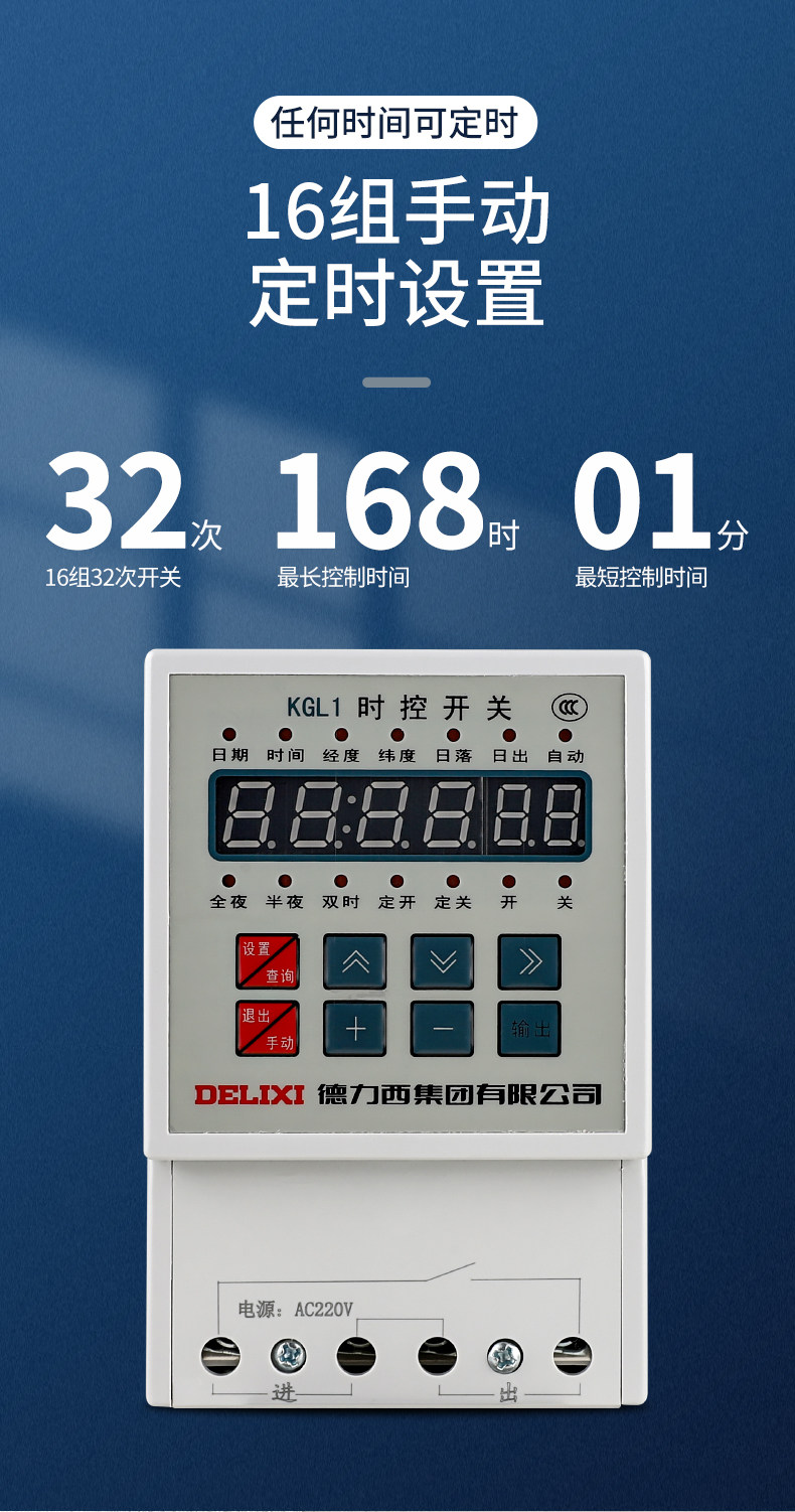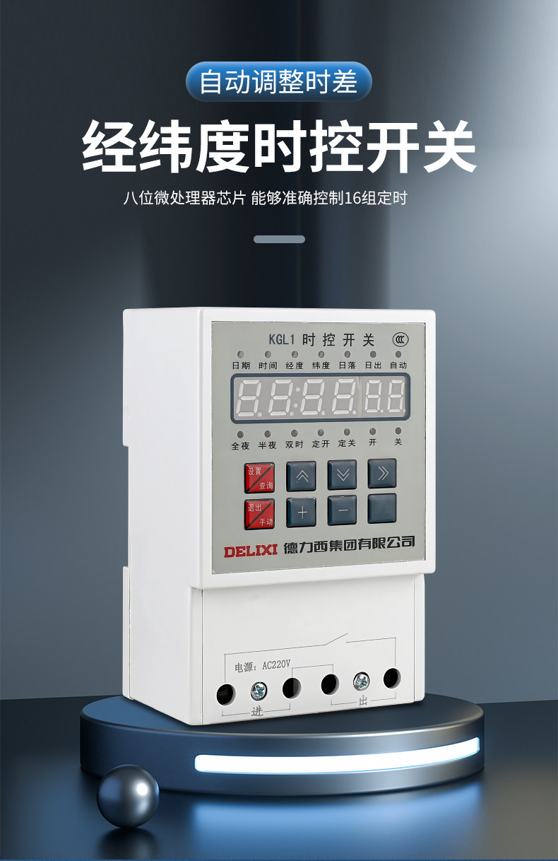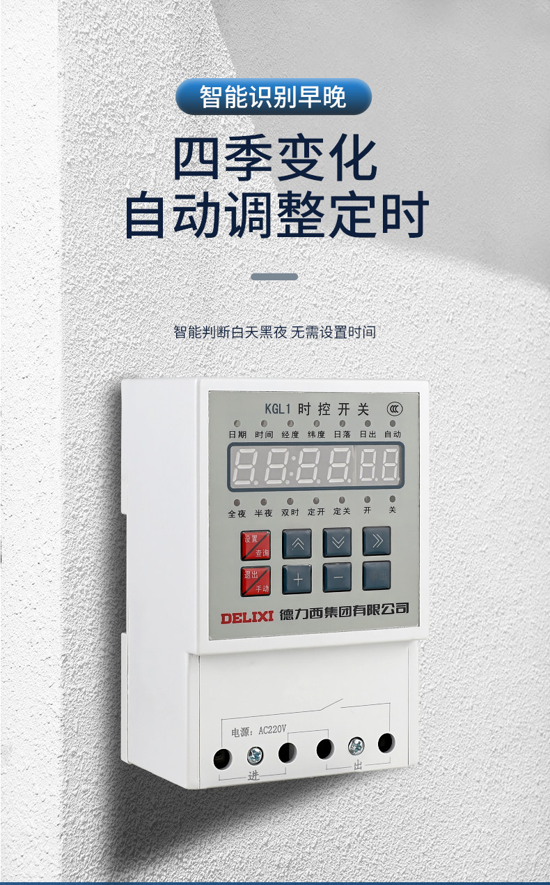 Delixi Kgl1 Latitude and Longitude Time-Controlled Timer Switch for Street Light Controller Microcomputer Timer Ac220V
