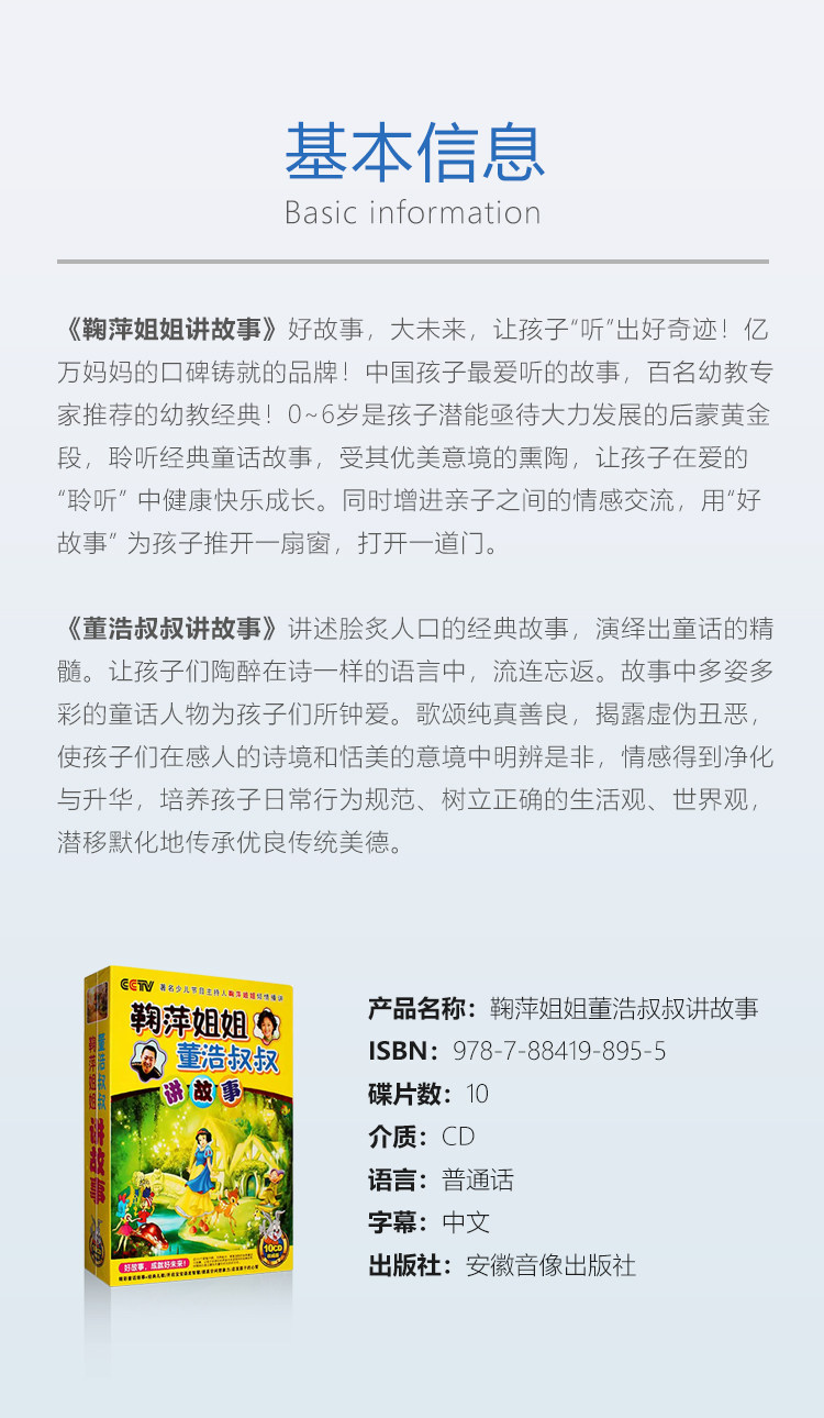 Sister Ju Ping and Uncle Dong Hao Tell Stories 10Cds: a Collection of Classic Fairy Tales for Young Children, Genuine Discs