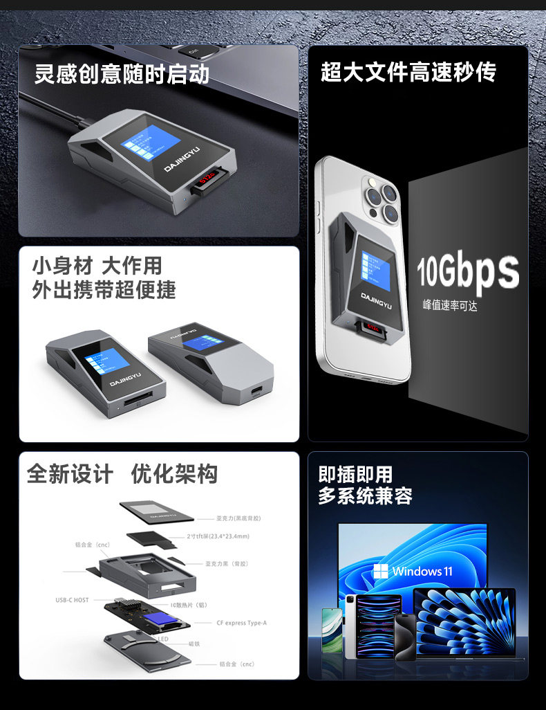 Big Whale High-Speed Cfexpress Card Reader Cfa Camera Card Cfb Memory Card Reader Typec Mobile Phone USB Computer Dual-Use
