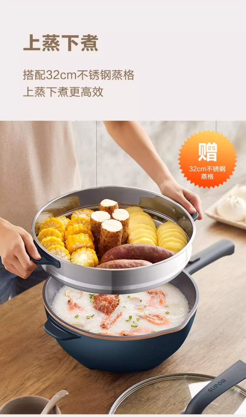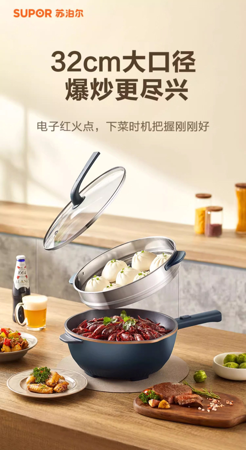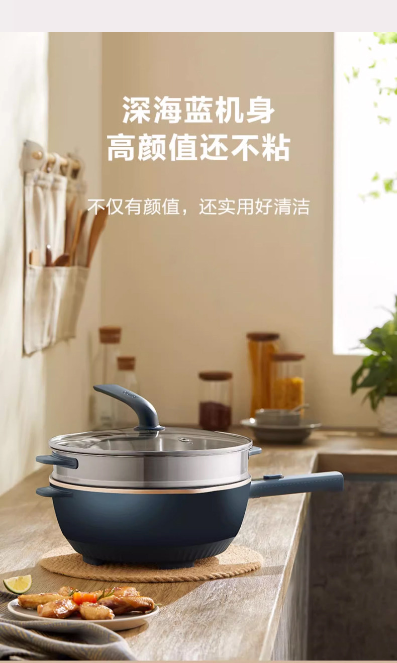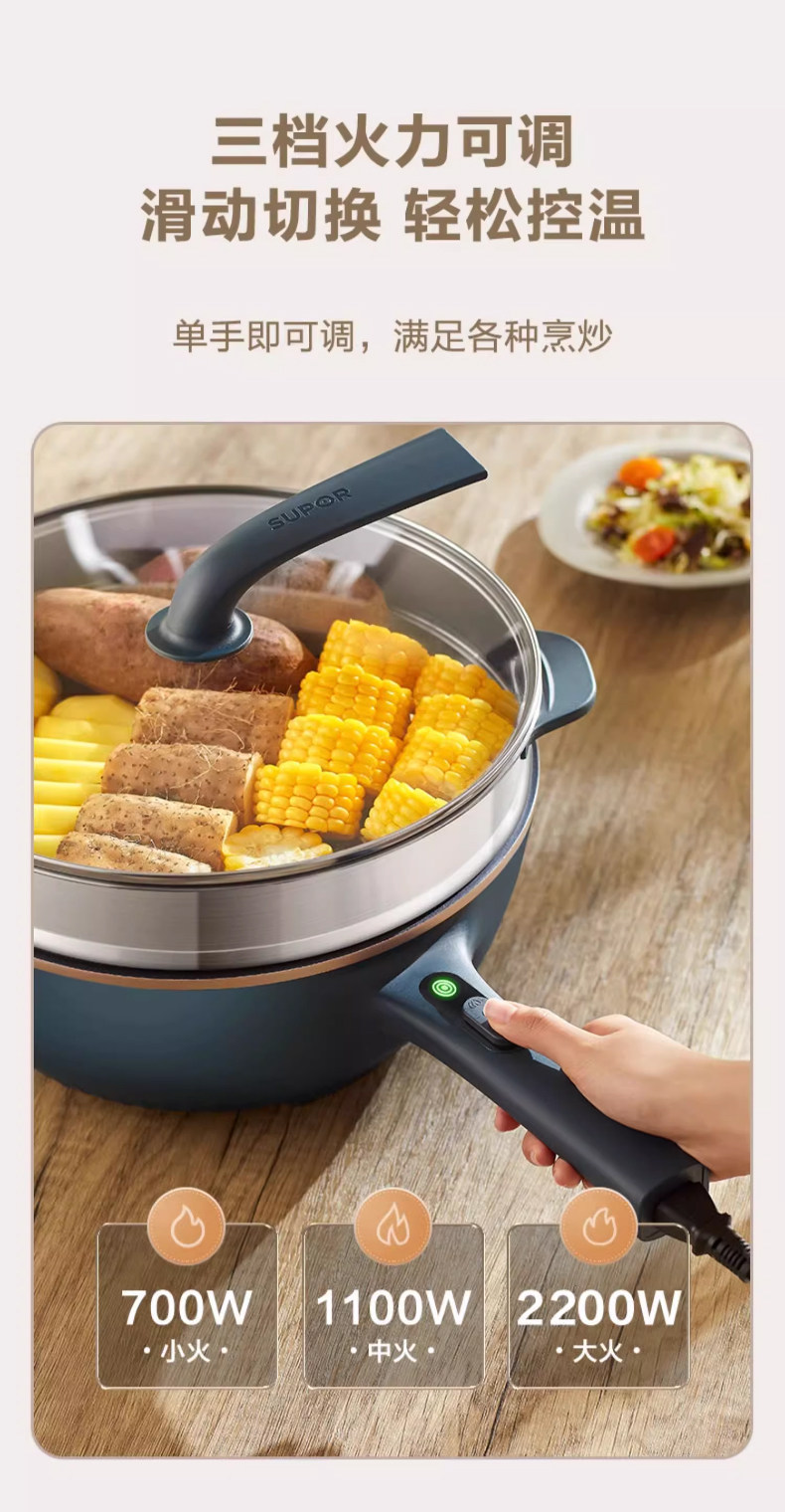 Supor Electric Frying Pan, Multi-Functional Household Steaming, Cooking, Frying, and Stir-Frying All-In-One Plug-In Electric Hot Pot, Non-Stick Electric Cooking Pot