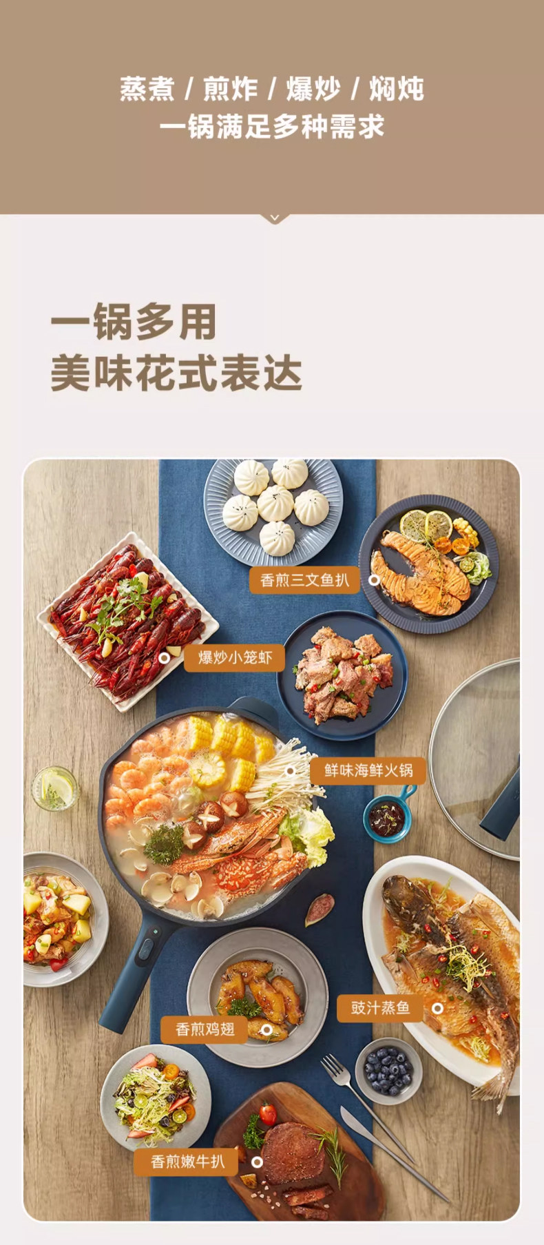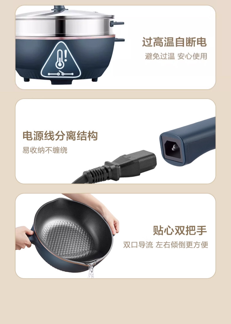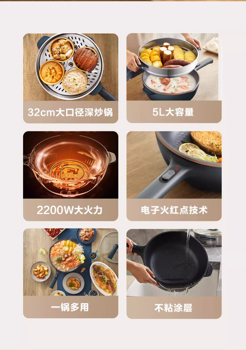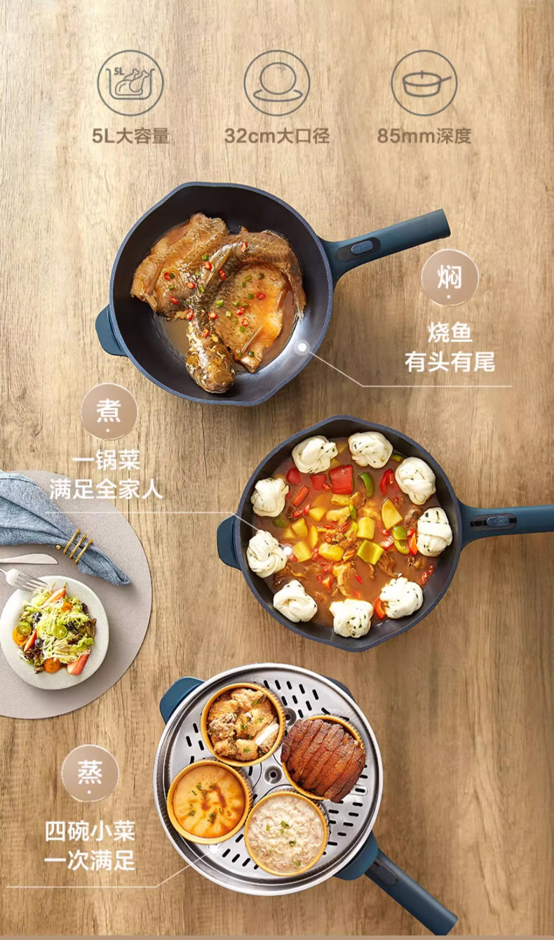 Supor Electric Frying Pan, Multi-Functional Household Steaming, Cooking, Frying, and Stir-Frying All-In-One Plug-In Electric Hot Pot, Non-Stick Electric Cooking Pot