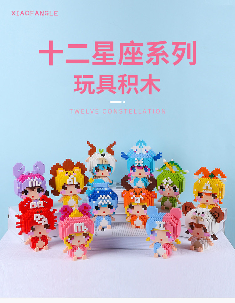 Xiaofangle Creative Small Particle Twelve Constellations Series Building Blocks Twelve Zodiac Educational Toy Model Gift