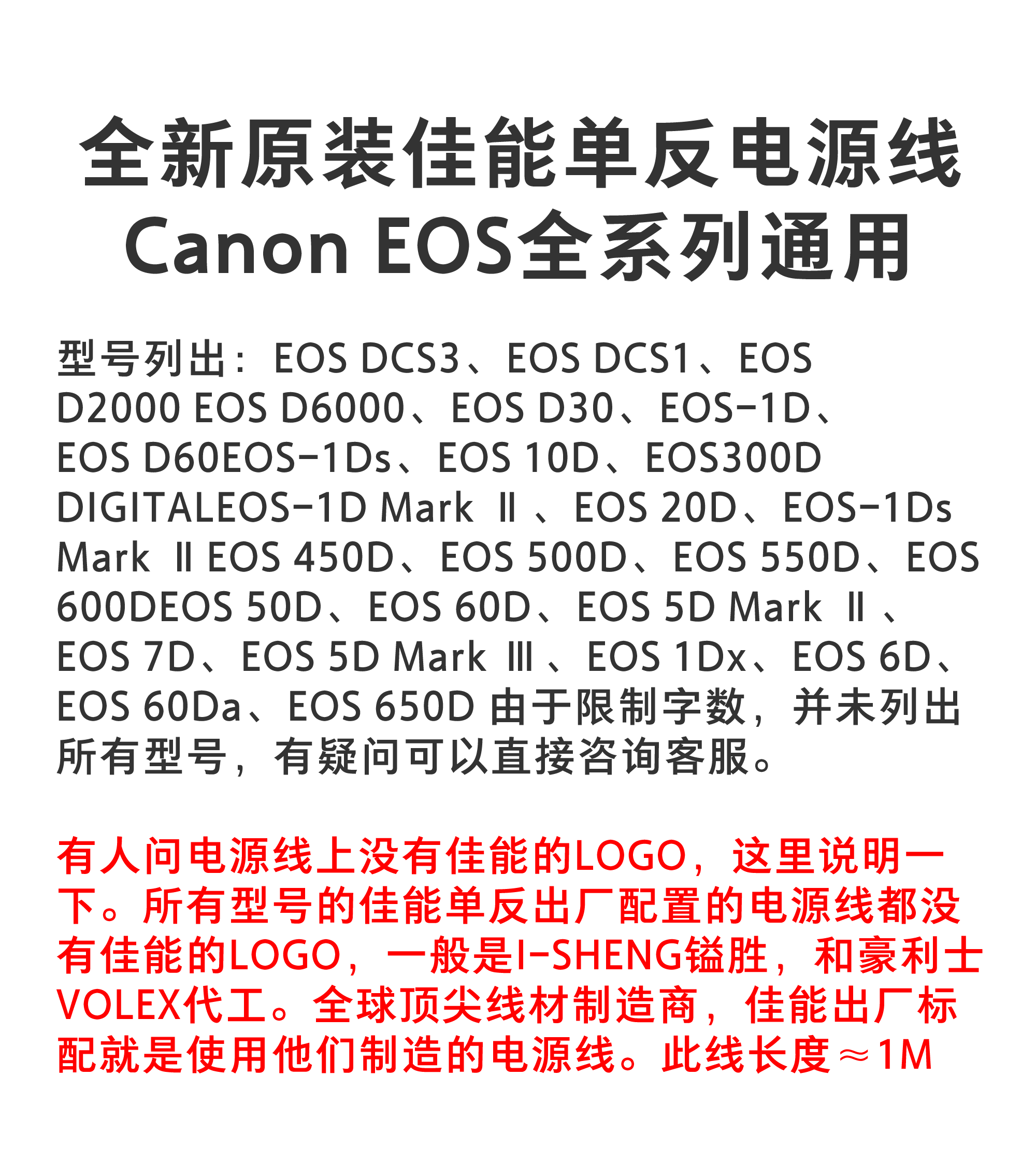 Brand New Original Canon Power Cord Charging Cable Canon 700D 750D 800D 850D Eos 6D 5D