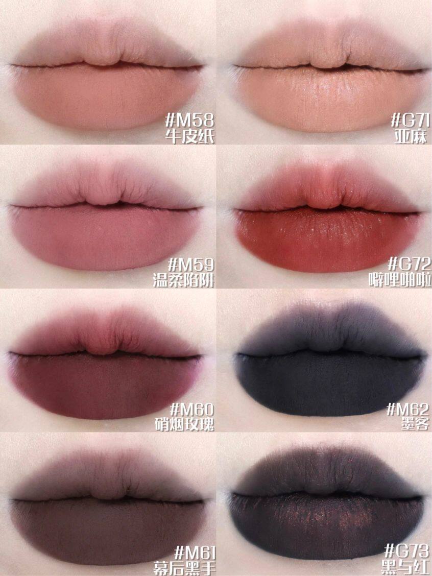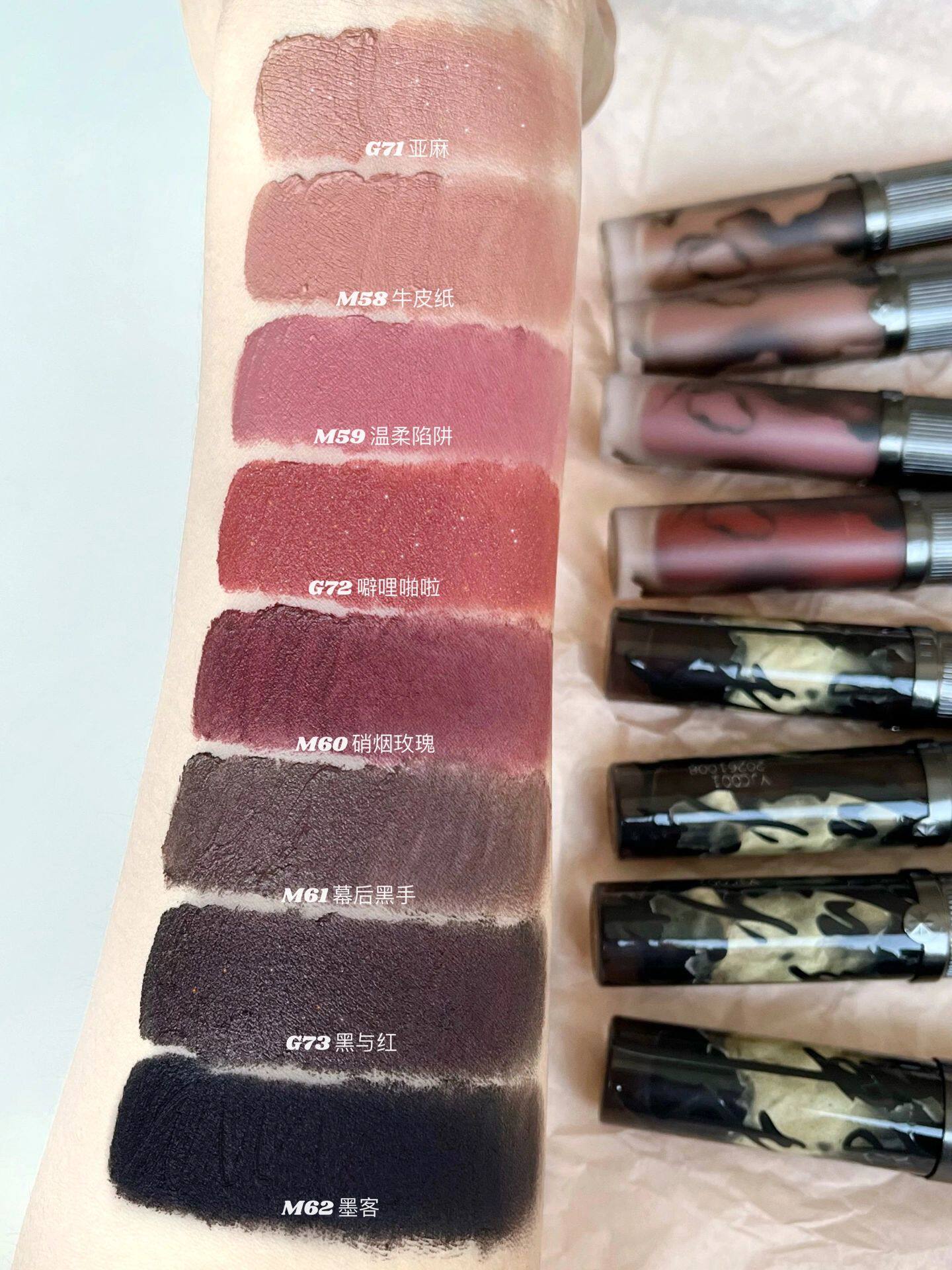 Color Classification M42 Mouthful of Fragrance-Spot,G61 Lace Bomb-Ready Stock,G62 Gun Lin Rose-Ready Stock,M43 Late Maturing Drama-Ready Stock,M50 Goatskin Book-Spot,M53 Salt Frost Rose (New)-Ready Stock,G64 Lover's Copy (New) - in Stock,M54 Heart-Stealing Oiran (New)-Ready Stock,M55 Night Animals (New)-Ready Stock,M52 Hot Love History-Spot,G60 Forbidden Fruit-Spot,Here Are the New Shades,G72 Crackling (Retro Red Brown + Blue Green Flash),G73 Black & Red (Intense Black + Metallic Red Polarized),M59 Gentle Trap (Haze Gray Powder),M60 Nitro Rose (Black Fire Nitrite),G71 Linen (Nude Color + Gold and Silver Polarized Light),M61: the Mastermind Behind the Scenes (Ebony Black Chocolate),M58 Kraft Paper (Milk Tea Brown),M62 Mo Ke (Pure Black),Here Are the Blushes:,[In Stock]18#Black Fufu (Baby Peach),[In Stock]17#True Color (Matte Nude Powder),[In Stock]16#Leave Blank (Transparent and Soft White),Here Are the Eyeshadows:,[In Stock]50 White Paper (Gray Nude Color),[In Stock]51 Black Characters (Rich Smoky Blue Gray Diamond Flash),[In Stock]52 Like Fire (Red and Black Contrasting Colors),[In Stock]55 Painted Dragon,[In Stock]56 Highlights