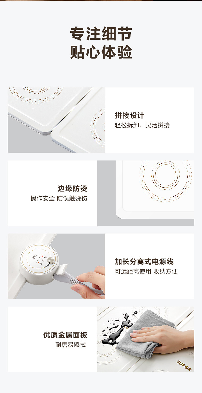 Supor Electric Warming Plate, Multifunctional Home Heating Mat for Keeping Food Warm, Foldable and Adjustable Temperature