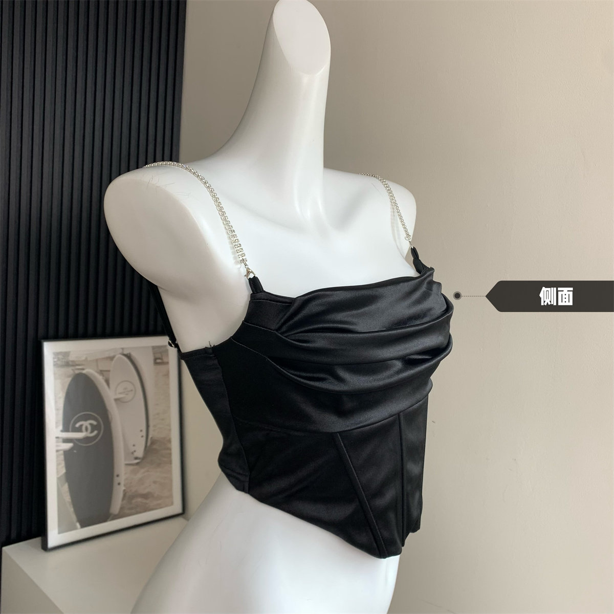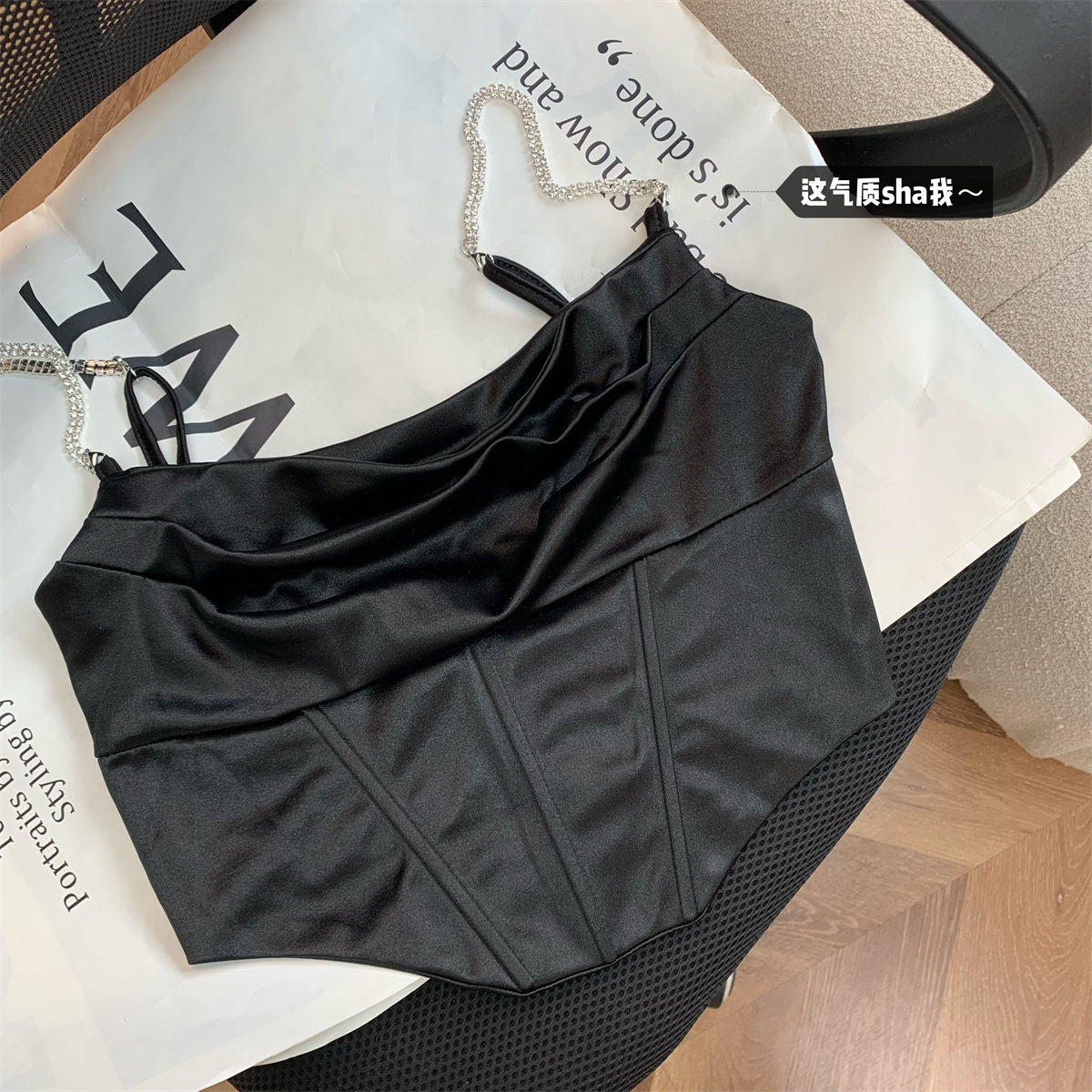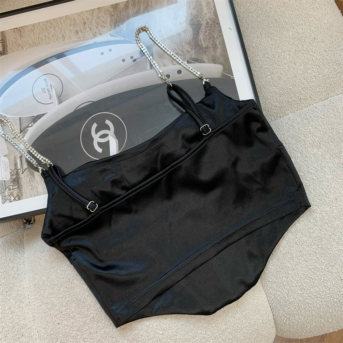 Popw Hot Girl Ruffled Collar Rhinestone Camisole Top for Women, Fishbone Waist Slimming Versatile Sexy Tank Top
