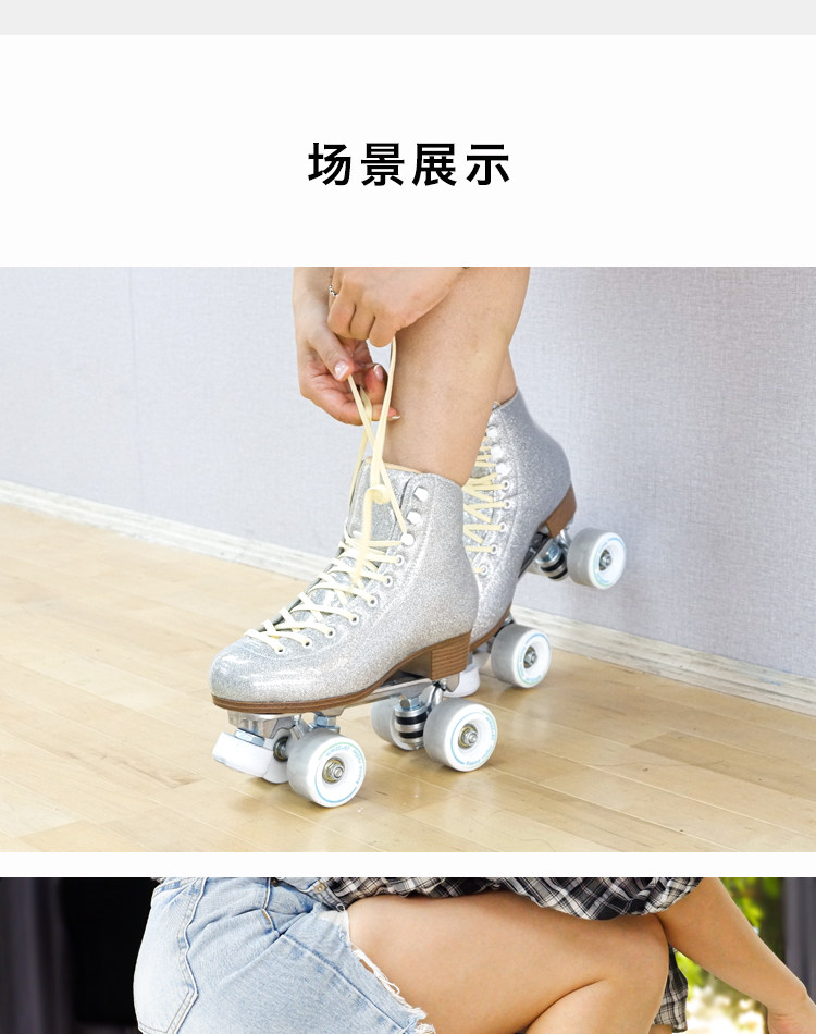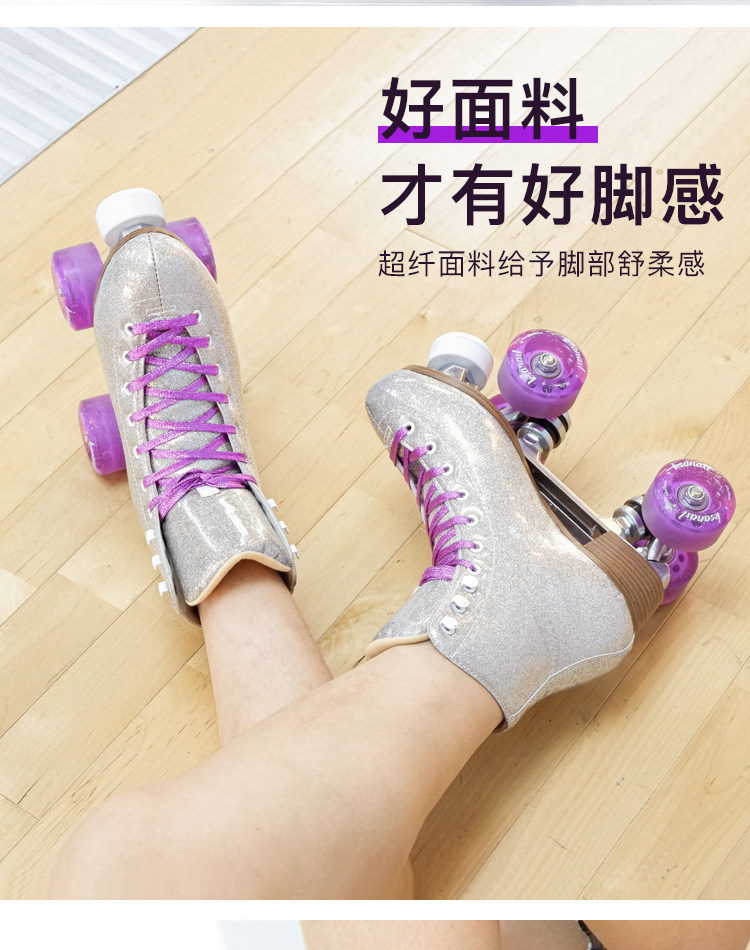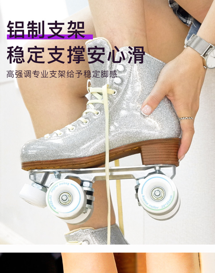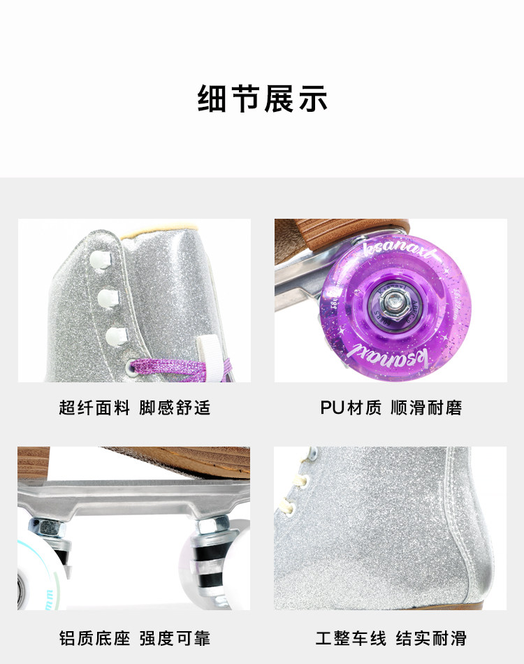 Color Classification Starry Silver + White Non-Flashing Wheels (Includes Roller Skate Bag),Starry Silver Glitter Purple Non-Flashing Wheels (Includes Roller Skate Bag),Starry Silver + Glitter Purple & White Light-Up Wheels (Includes Roller Skate Bag),Starry Sky Silver Red Blue Green Colorful Glitter Wheels (Includes Roller Skate Bag),Starry Silver + 6-Light Snowflake Pink Glitter Wheels (Includes Roller Skating Bag),Starry Silver + Pearlescent Blue Racing Wheel 95A (Comes with Roller Skating Bag),Starry Silver + 62X33 Six-Light Sequin Snowflake White Light Wheel (Includes Roller Skating Bag)