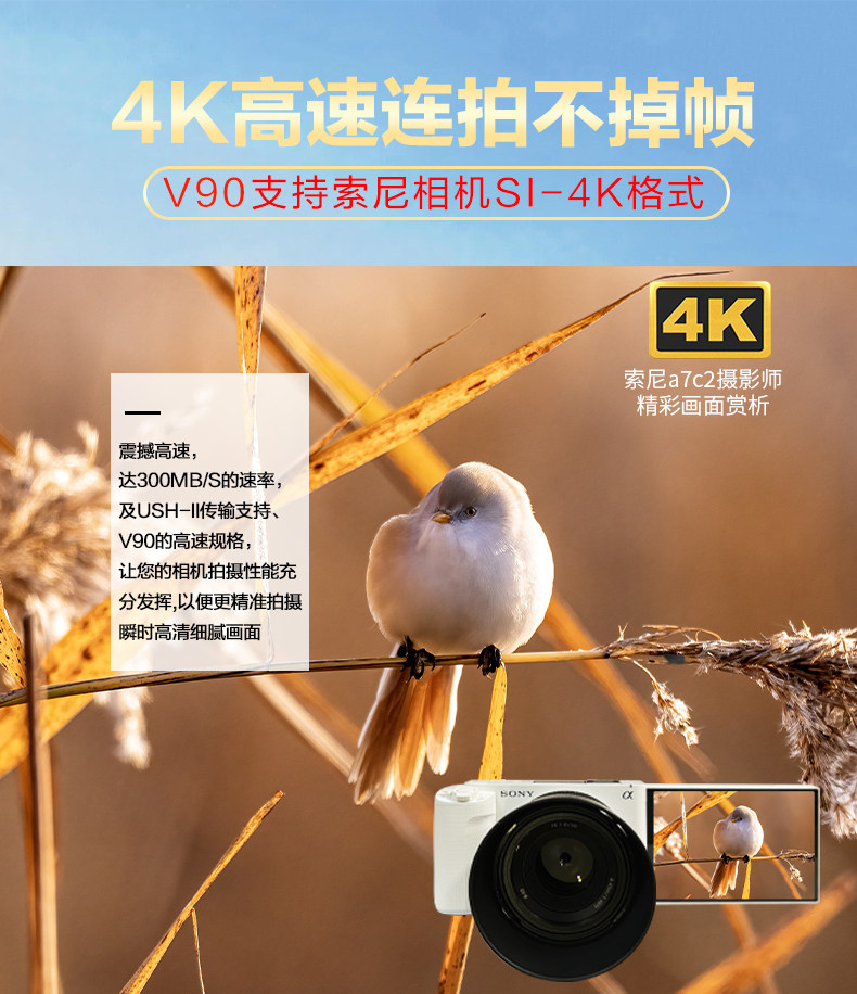 V90 High-Speed Sd Camera Internal Memory Card Is Suitable for Sony Zve1/A7C2/A6700, Canon R62R7, and Fuji Xt5