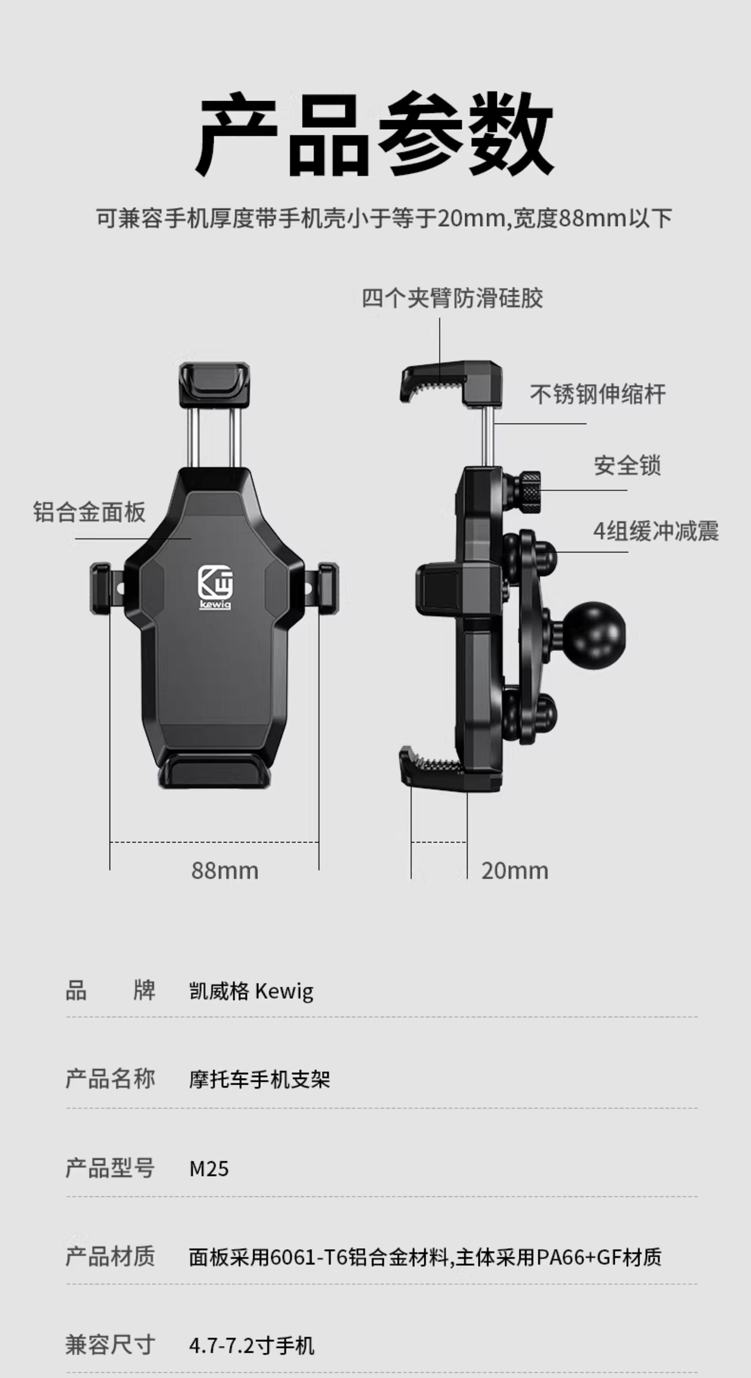 Kaiweige Motorcycle Mobile Phone Navigation Bracket Shockproof and Waterproof Battery Car Takeaway Rider Electric Vehicle Mobile Phone Bracket