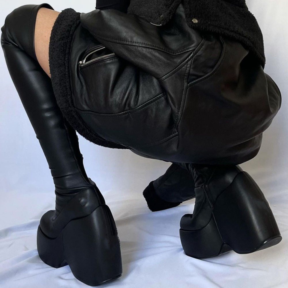 Independent Foreign Trade European and American Punk Style Ultra-High-Heeled Thick-Soled Slim Boots Large Size Sexy Nightclub Catwalk Over-The-Knee Boots