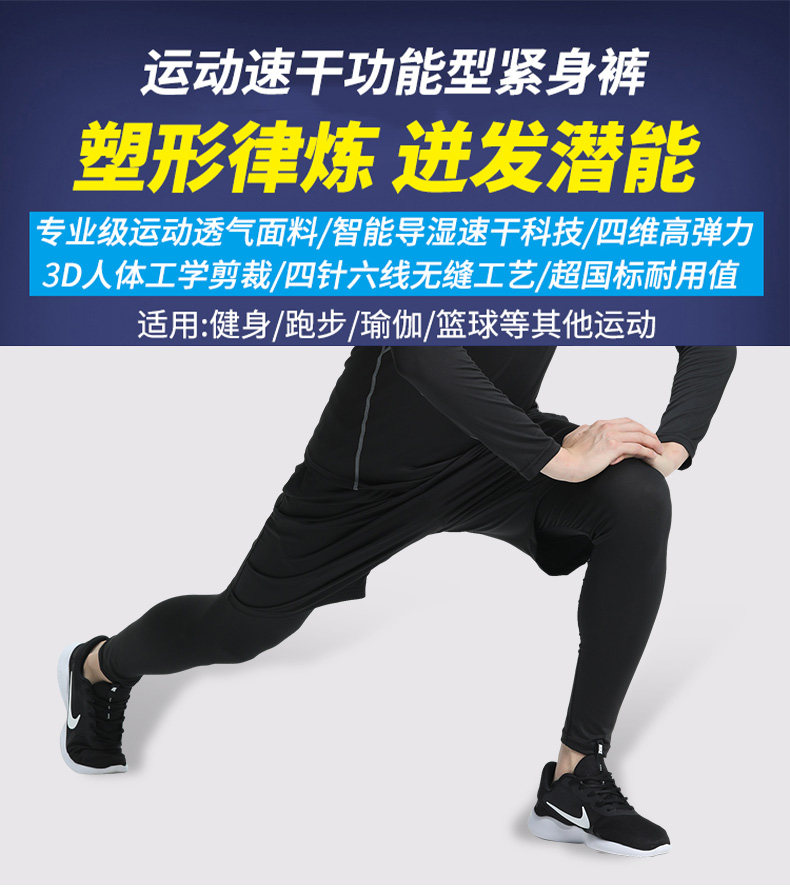 Tight-Fitting Long Pants Men's Fitness Wear Basketball High-Elastic Compression Quick-Drying Running Sports Training Gear Base Layer Tights Sports