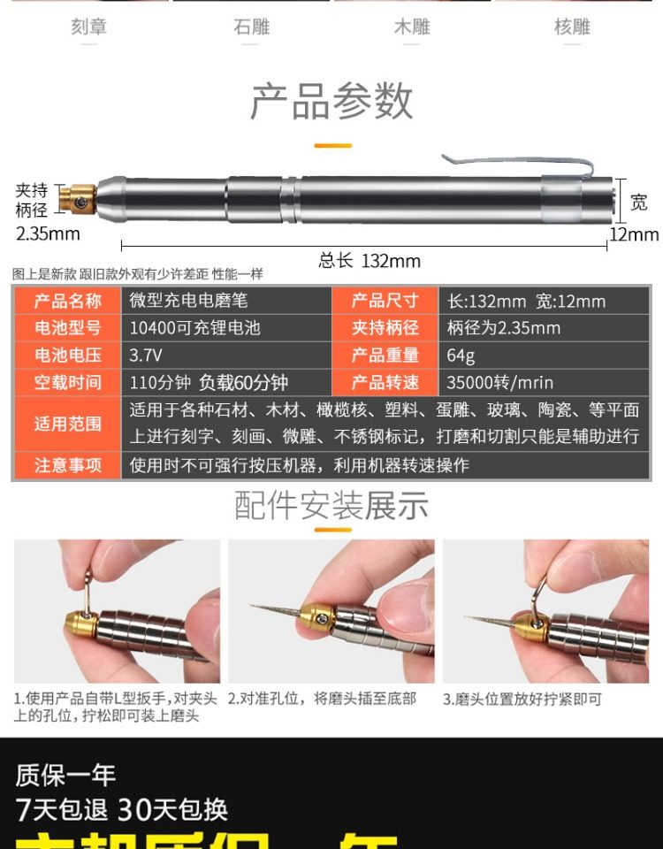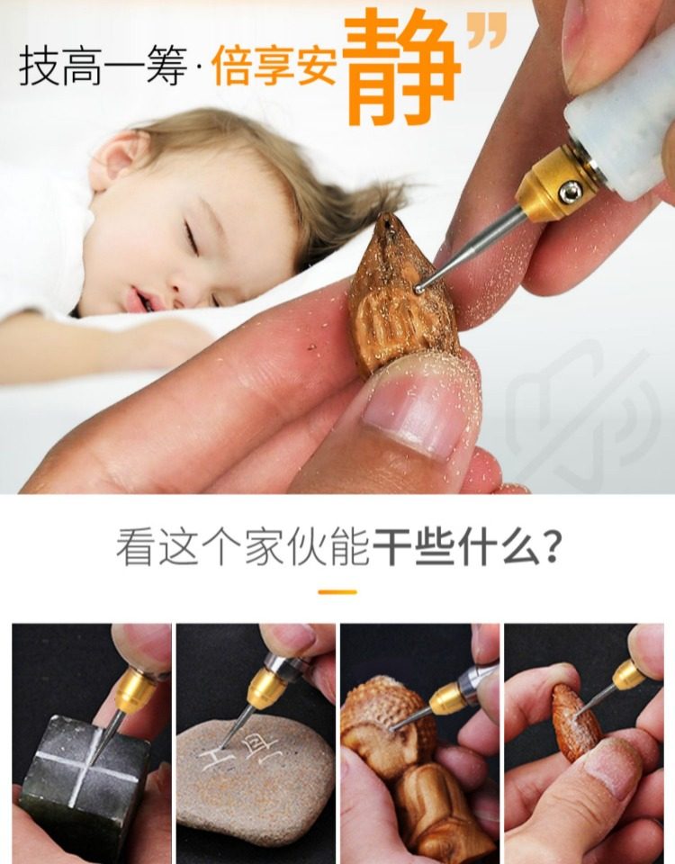 Electric Grinding Pen, Engraving Pen, Pen-Type Electric Grinder, Handheld Jade, Peach Pit, Dental Tool, Hobby Tool, Gourd Polishing Head, Carving Pen