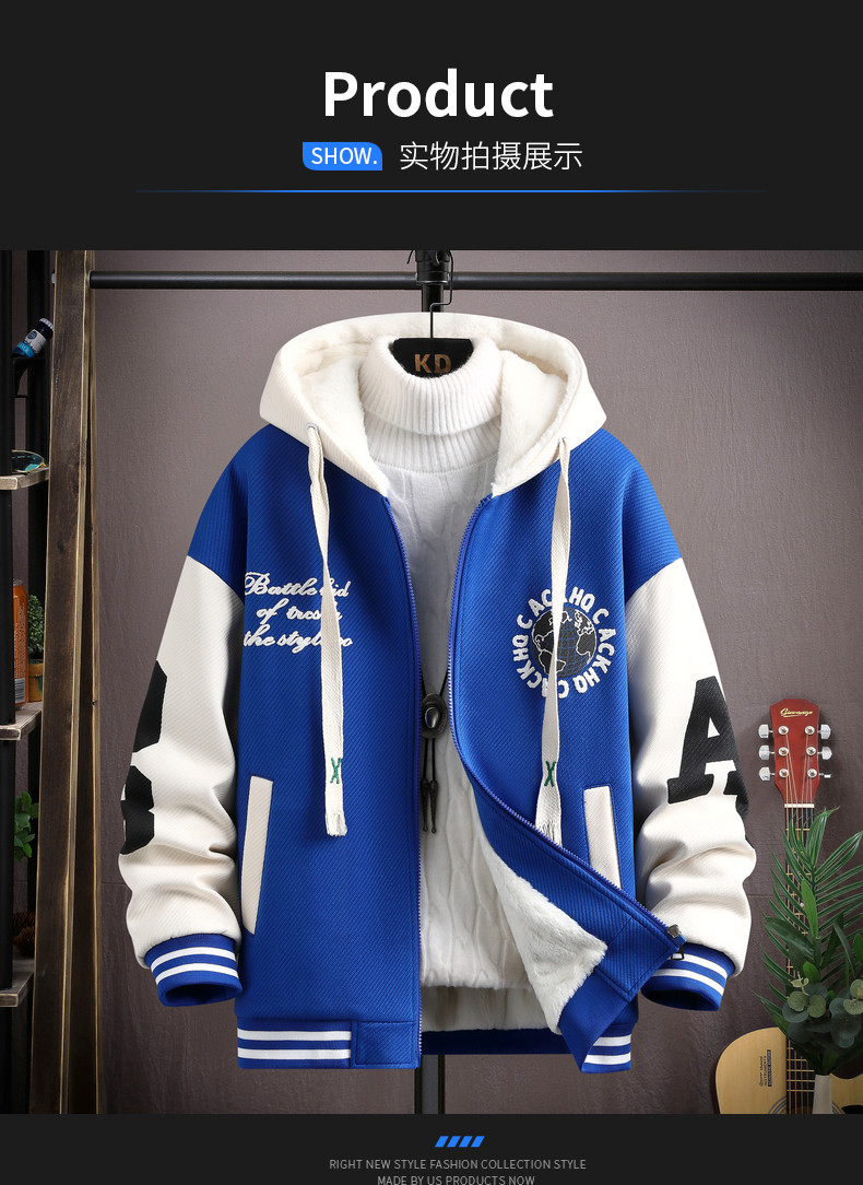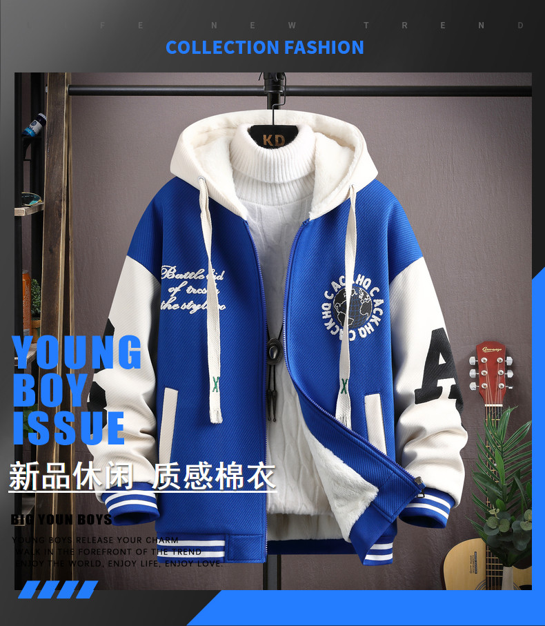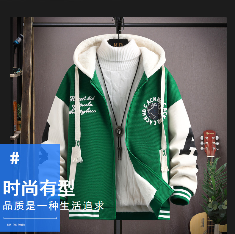 Hooded Sweatshirt Men's Jacket Autumn and Winter Fleece-Lined Thickened 2026 New Korean Style Trendy Youth Student Baseball Uniform