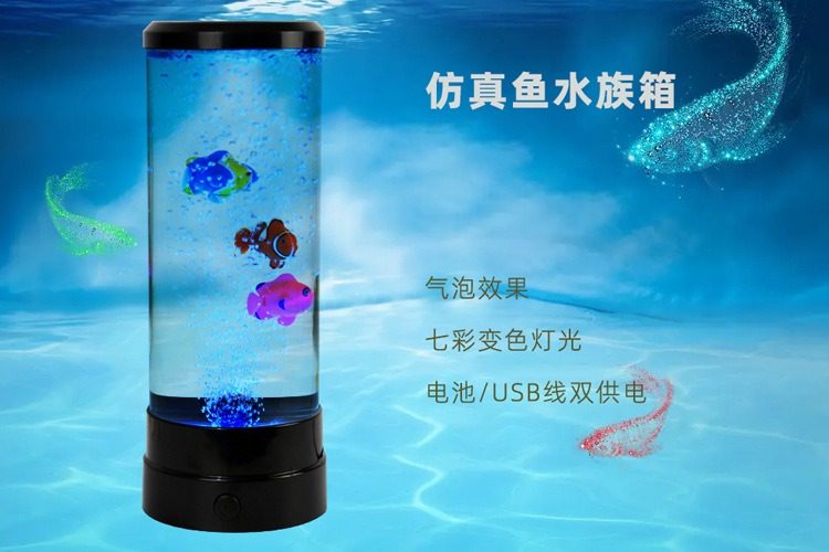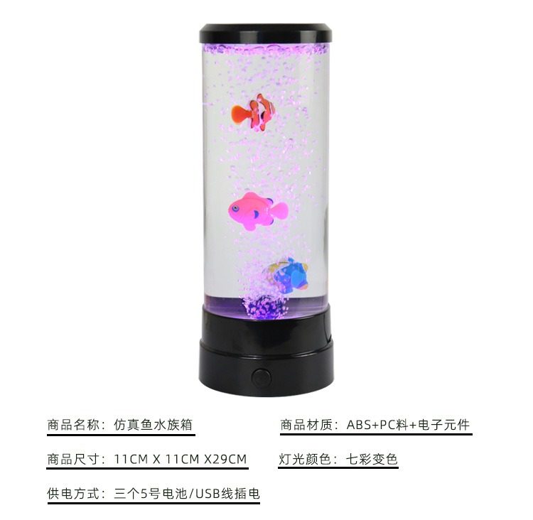 Simulated Led Electronic Fish Tank Aquarium with Colorful Changing Bubble Fish Lights, Jellyfish Night Light, Bedroom Desktop Table Lamp