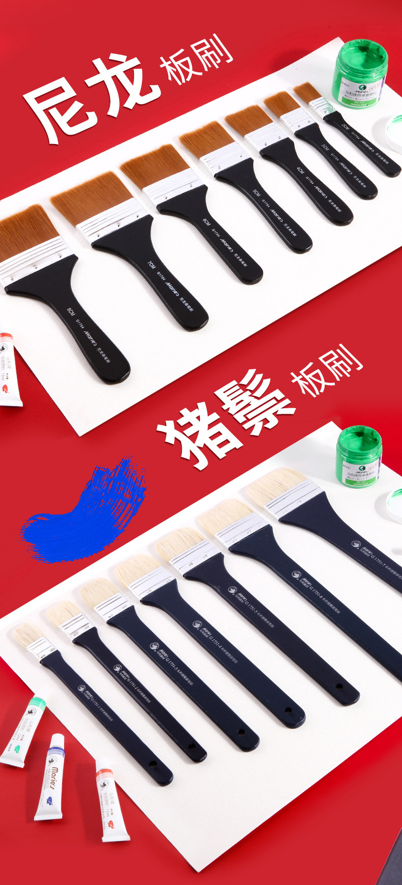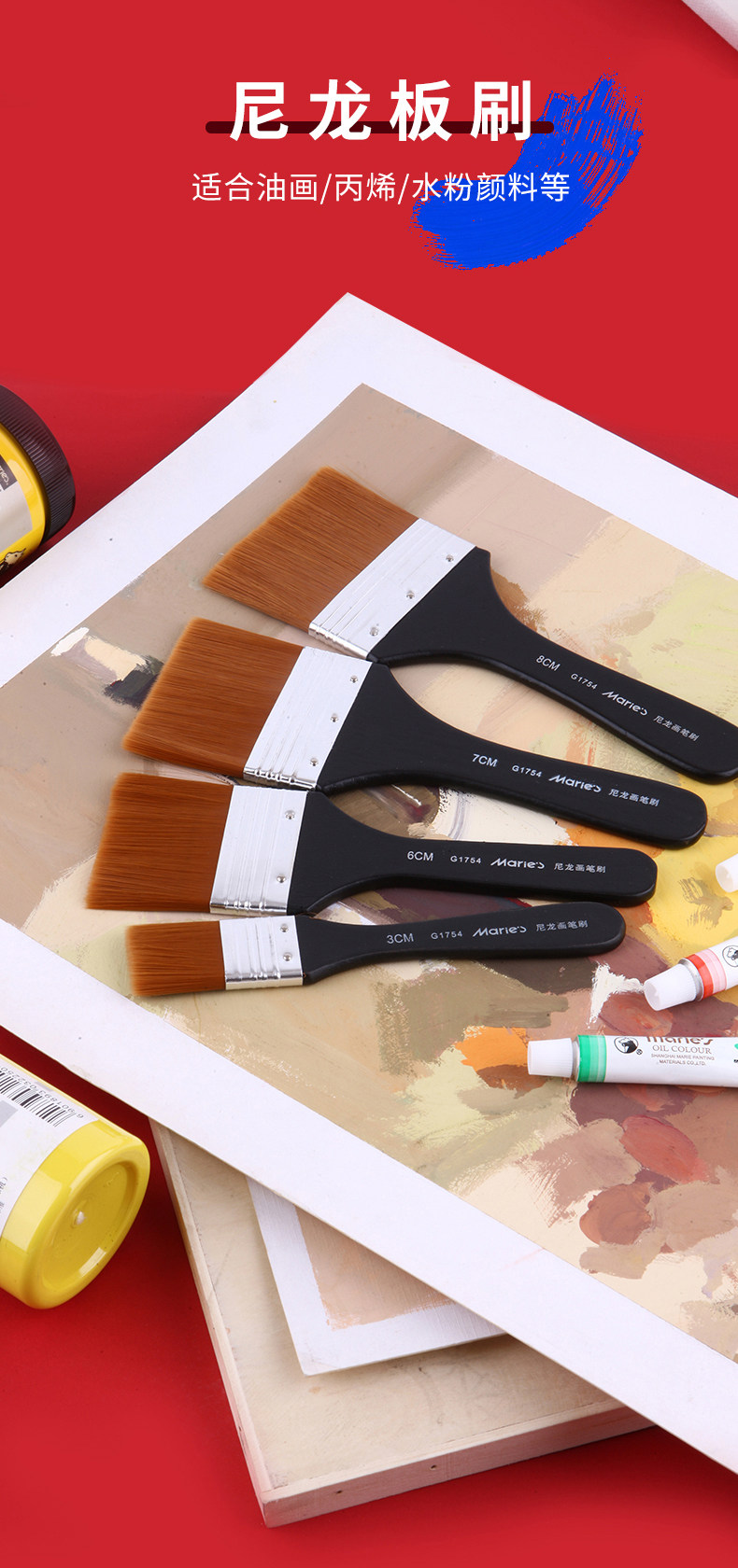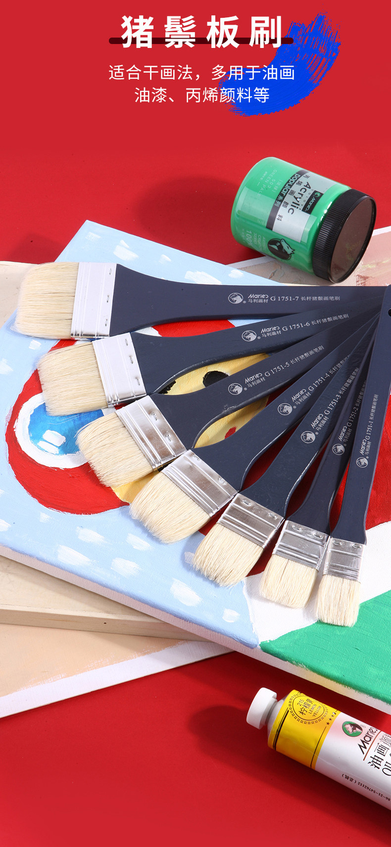 Mali Oil Painting Brush Set, Flat Brush for Acrylic, Gouache, Watercolor, Beginner Painting Brushes, Special Flat Brush for Art Students, Professional Wall Painting Brush, Base Brush, Painting Supplies, Flat Brush Set