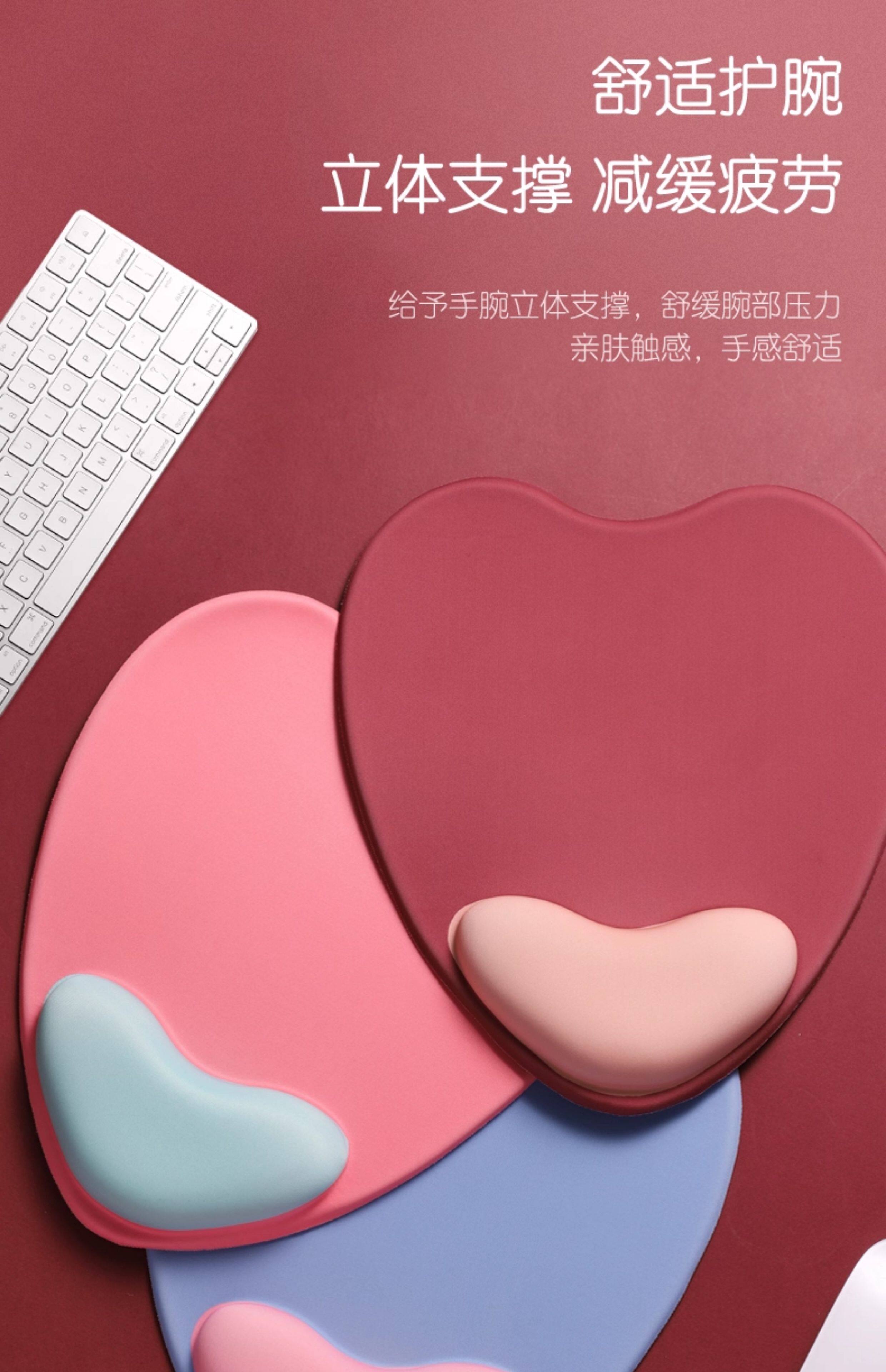 Cute Wrist Support Mouse Pad with Heart Shape for Men and Women, Dormitory Gaming E-Sports Wrist Support Keyboard Pad, Thickened and Non-Slip