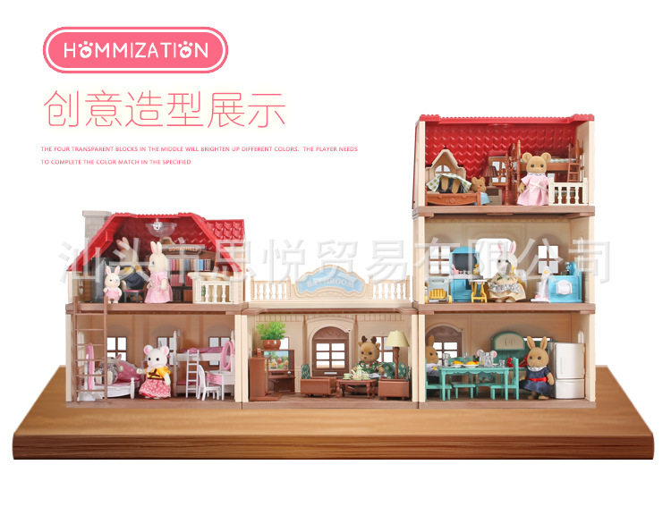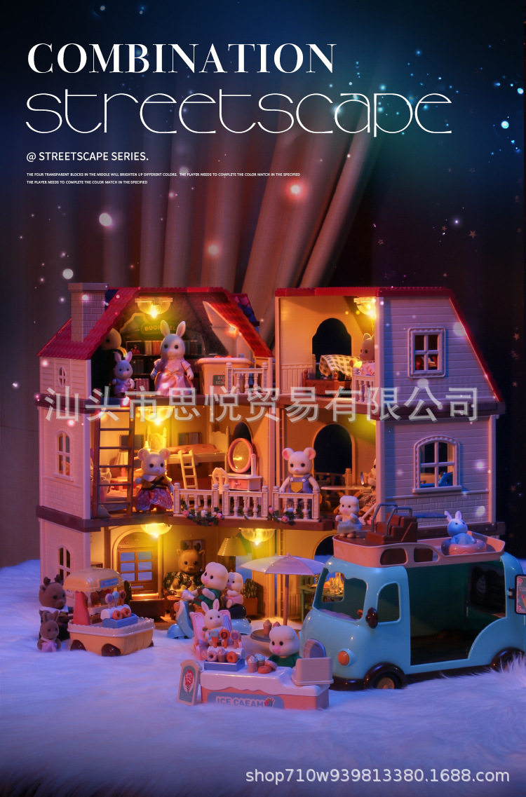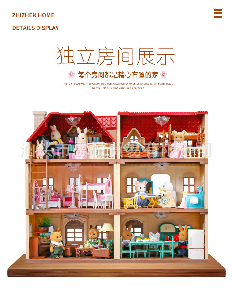 Children's Play House Villa Set Toy Forest Animal Family Figurines Girl's Play House Toy Model